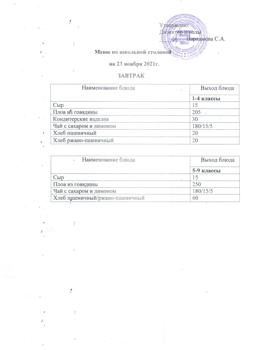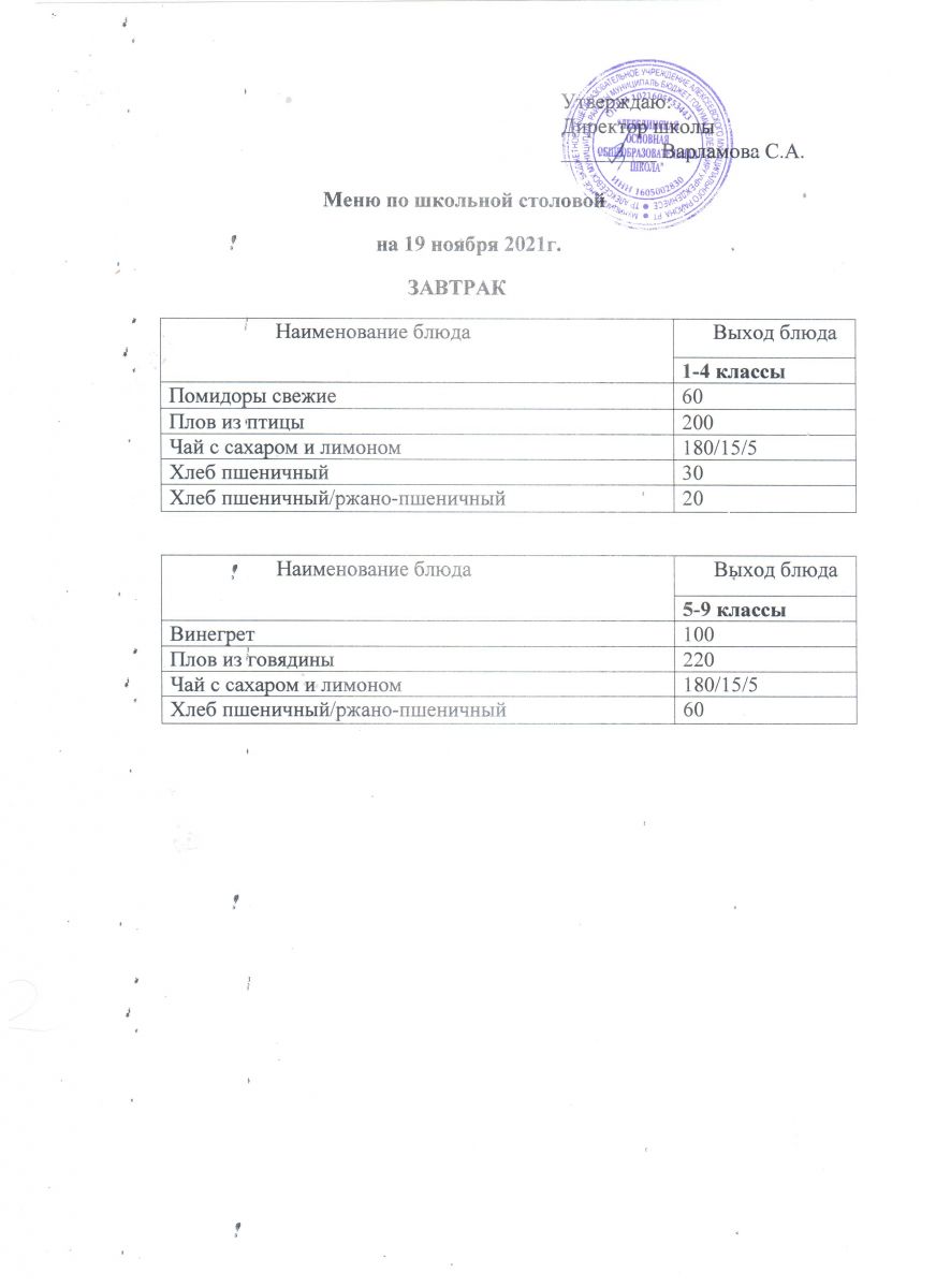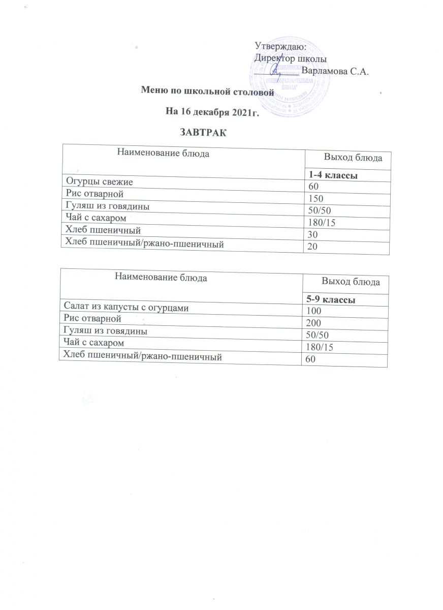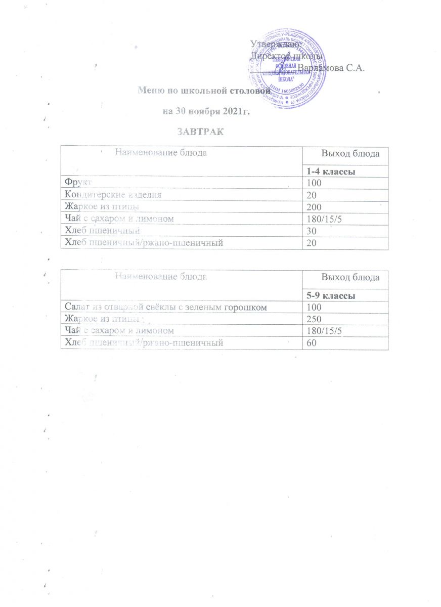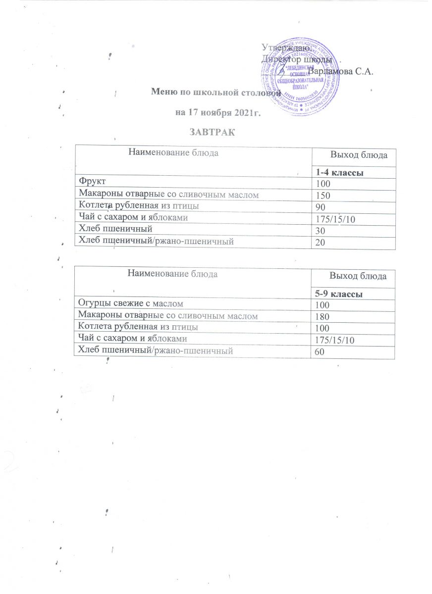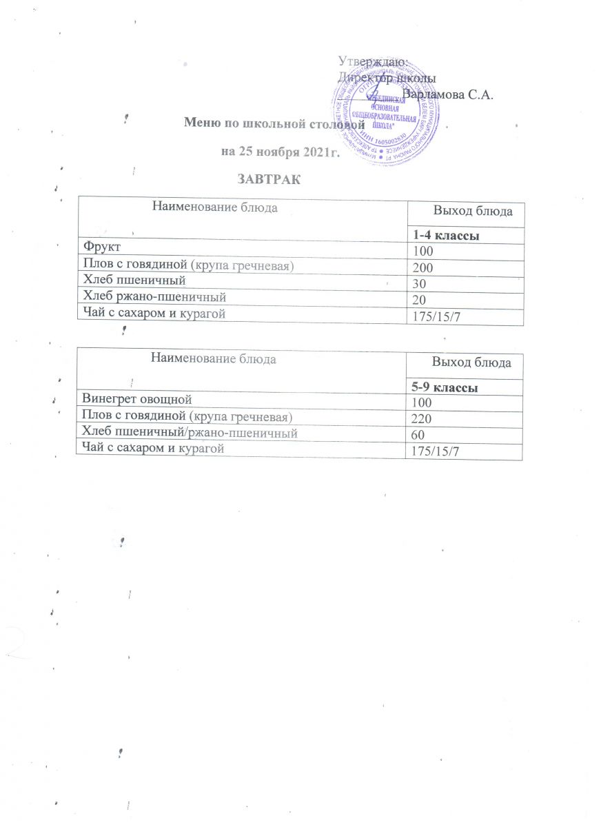 Меню по школьной столовой на пятницу 1 неделя 2021.