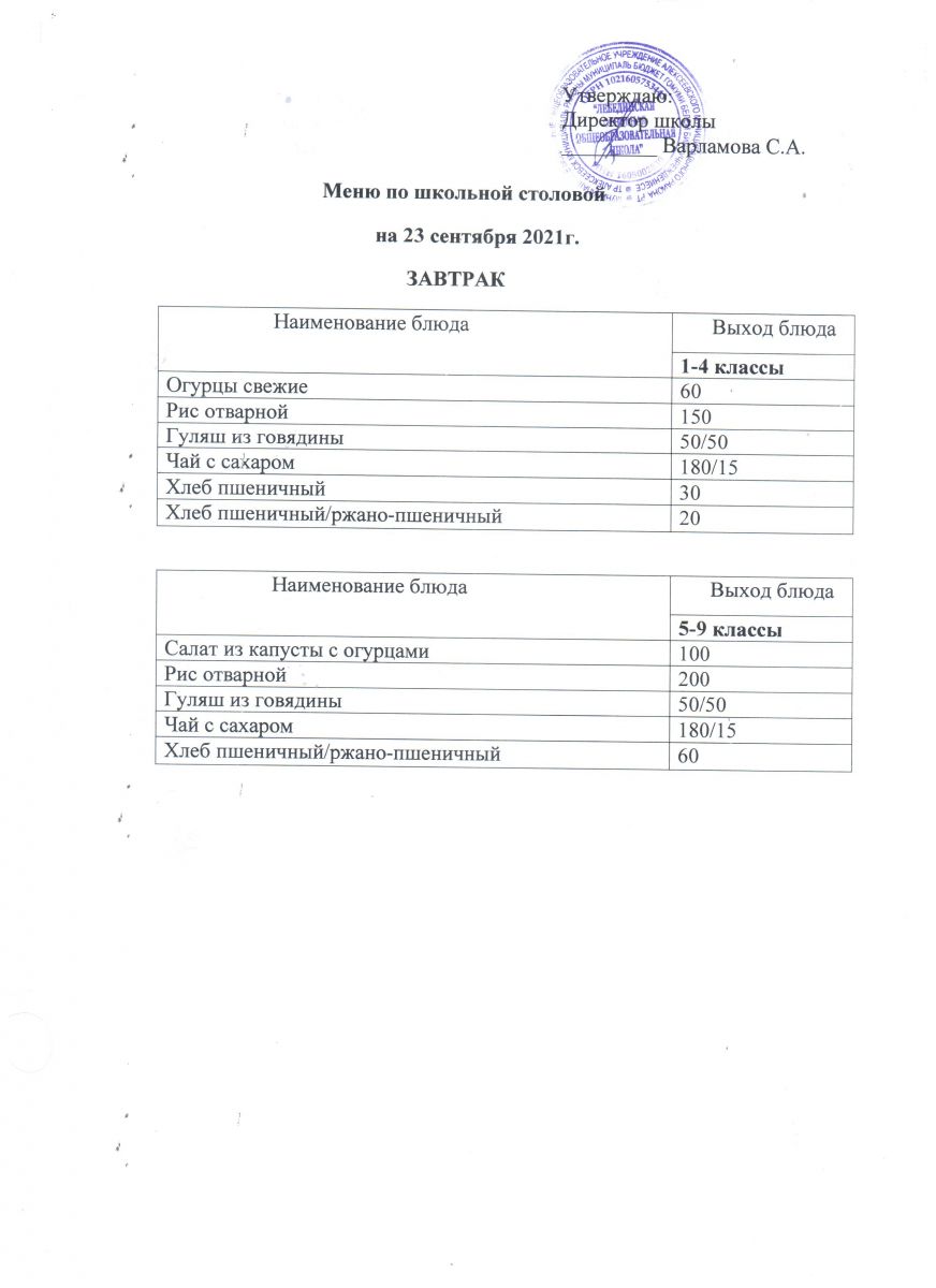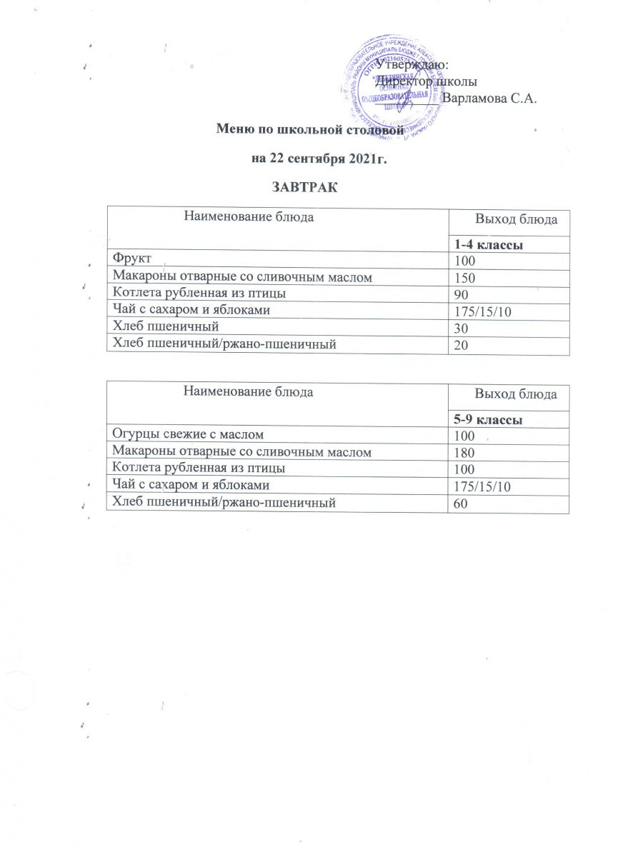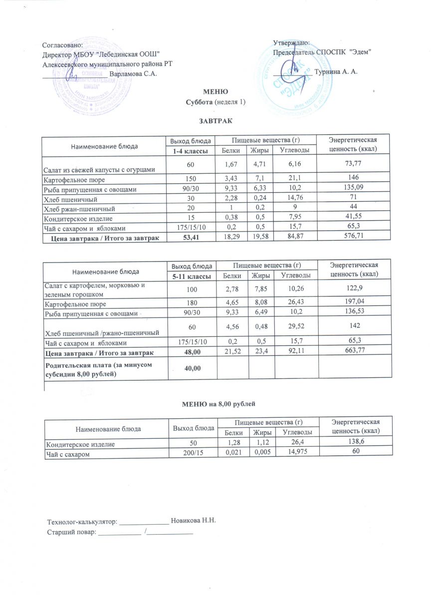 Меню по школьной столовой на 2022г суббота 1 неделя.