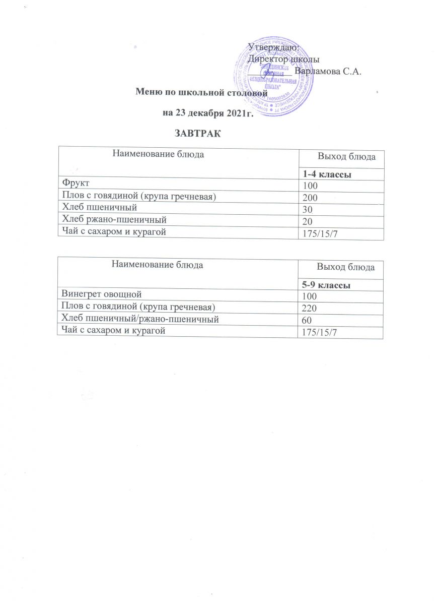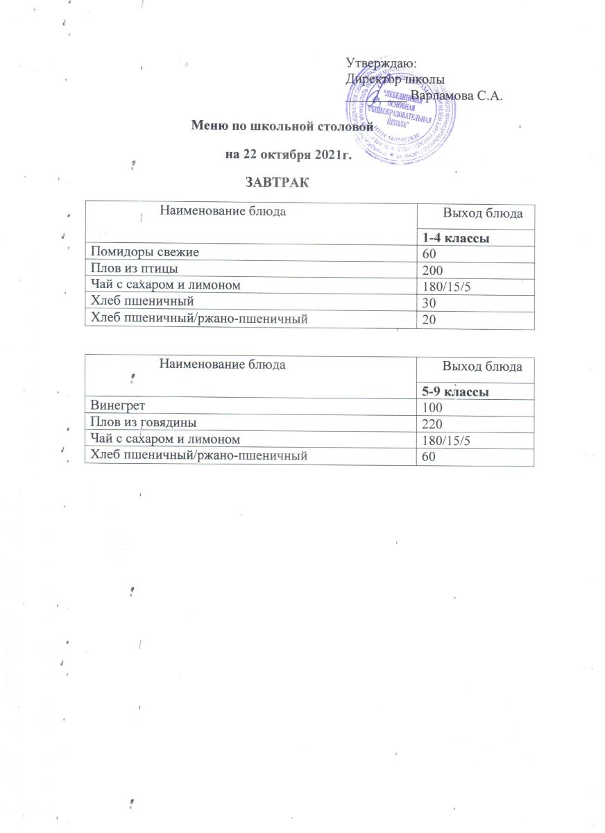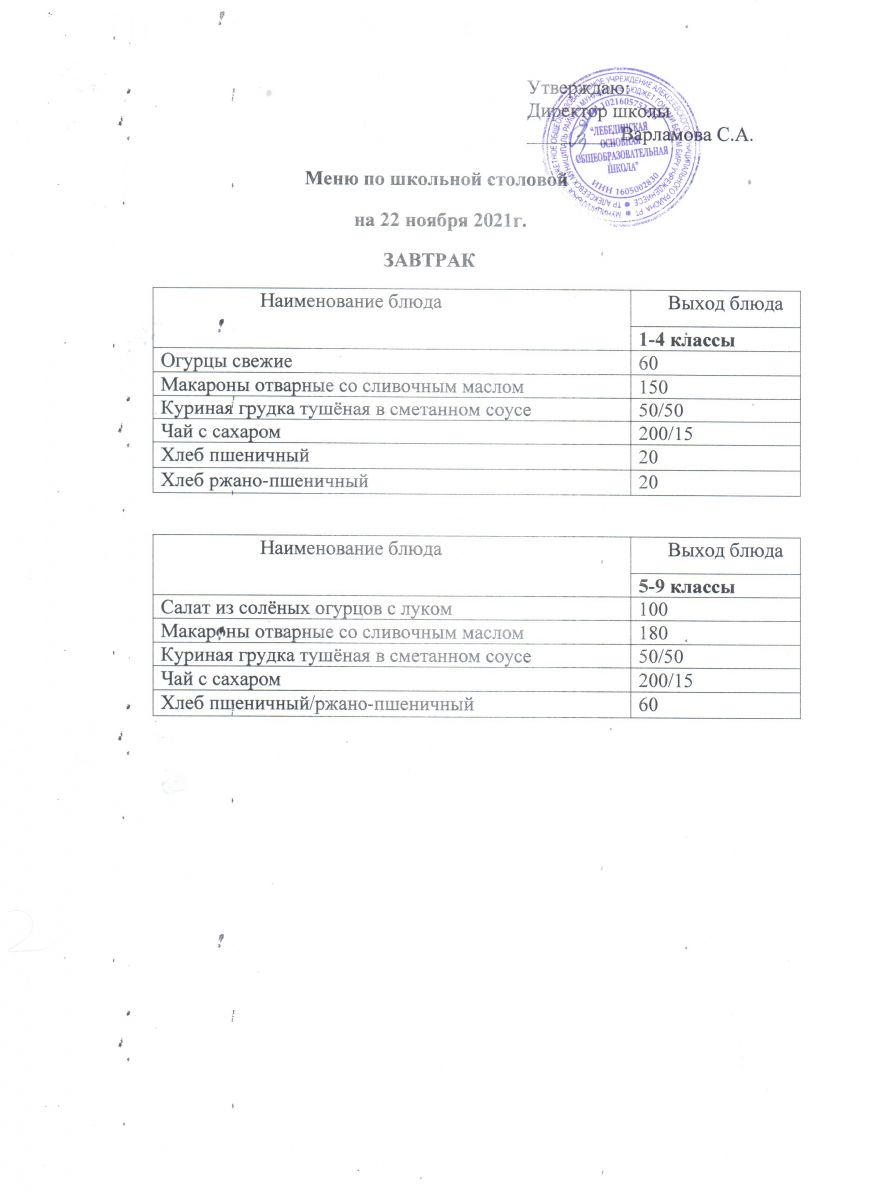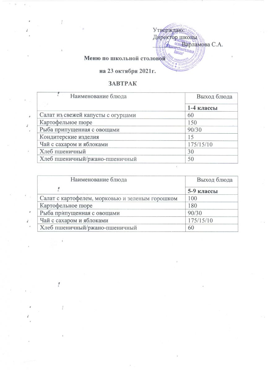 Меню по школьной столовой на 2022г суббота 1 неделя.