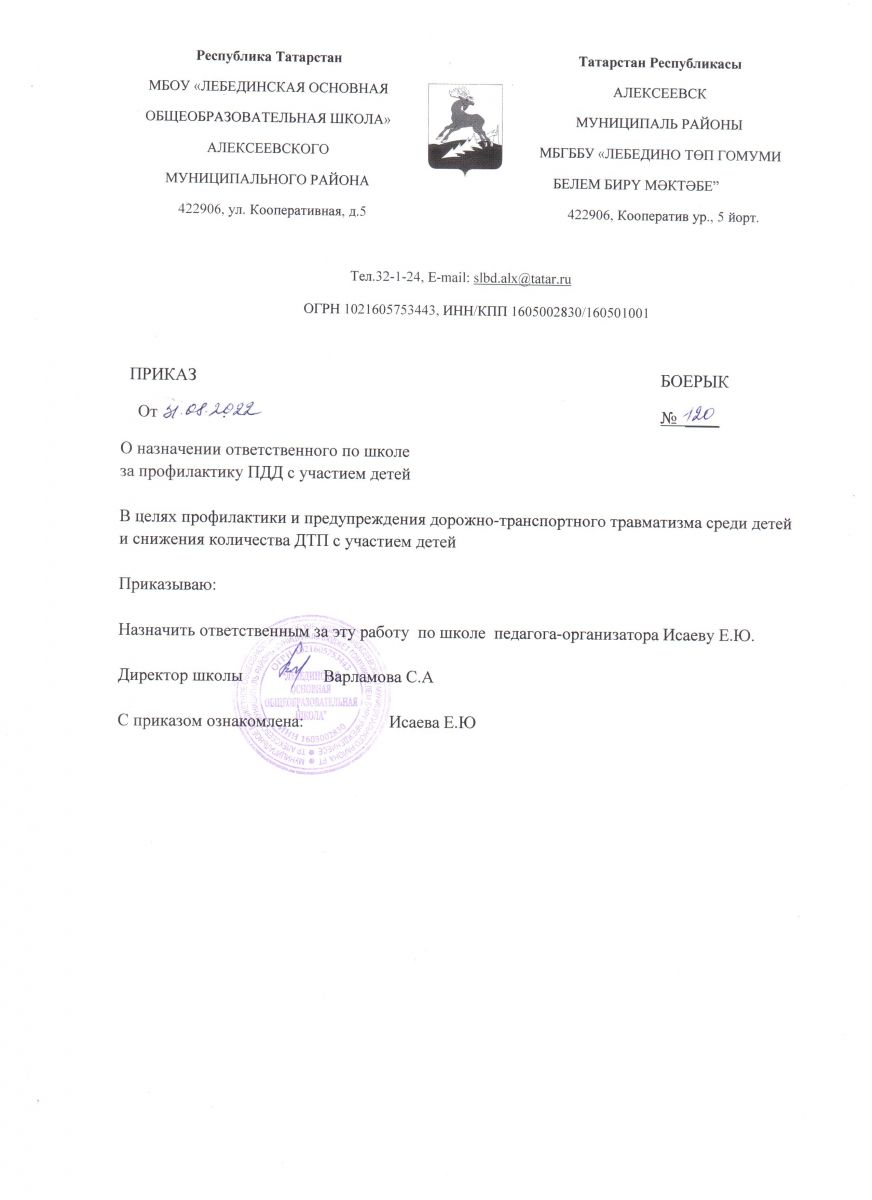Приказ о назначении ответственного за профилактику ПДД на 2022-23г.