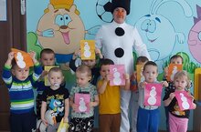 В нашем просторном светлом зале, мы поздравили наших зимних именинников. В гостях у наших ребят побывал "Зайчик", малыши получили массу удовольствий и впечатлений.