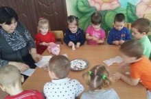 Дети младшей разновозрастной группы на занятии готовят "модули" (бумажные шарики) для будущей коллективной работы. Такие упражнения способствуют развитию мелкой моторики рук и усидчивости.