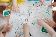 25 апреля в рамках "Дня Эколят" было проведена коллективная работа по рисованию( пальчиками) : "Русская береза"