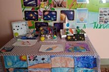 В предверии дня космонавтики, дети совместно с родителями приняли участие в выставке в детском саду на тему "Космос"