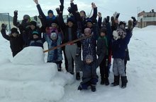 Проведена военно-спортивная игра «Зарница», в ходе которой соревновались команды Красных и Синих в спортивной эстафете, умении лепить из снега военную технику.