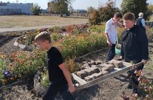 Сегодня учащиеся школы не только хорошо отдохнули на Дне здоровья , но хорошо поработали. Учащиеся школы под руководством Демидовой О.В. провели ремонт цветочных клумб.