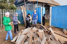 1 октября -День пожилого человека. Учащиеся школы перед праздником оказали пожилым людям села помошь в благоустройстве придомовой территории .