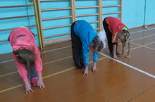 Учащиеся начальных классов сдали норматив ГТО- наклон вперёд из положения стоя с прямыми ногами на полу.