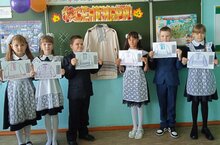 Все учащиеся школы получили от гГлавы Алексеевского муниципального района Демидова С.А. световозвращиющие значки с логотипом Алексеевского района, а первоклассникам дополнительно вручили СВЭ на рюкзаки .