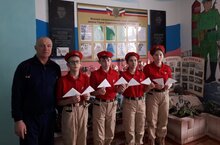 Учащиеся, члены Юнармии, в рамках месячника гражданско-патриотического воспитания написали письма защитникам Отечества -участникам СВО .