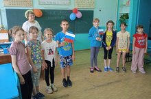 Сегодня в лагере день прошел под девизом "Я люблю Россию!". Учащиеся посмотрели презентацию "Символы государства" Курмышева Л. Н. познакомила ребят с символами нашего государства, авторами гимна, значениями цветов флага. Ребята узнали много нового и интересного.Нагорнова Г. П. провела викторину "Знай своё Отечество! ", на которой ребята применили знания, полученные на презентации. Также командами были изготовлены флаги нашего государства. Ребята вспомнили также национальные символы нашего государства: берёза, балалайка, медведь, матрёшка, блины и др., в викторине победила команда с одноимённым названием.