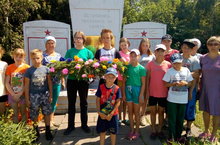 Сегодня , в День памяти и скорби, воспитанники лагеря провели у памятника павшим в ВОВ траурный митинг и возложили венок из еловых веток, украшенный цветами.
