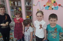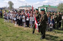 Учащиеся школы, педагоги, воспитанники детского сада, ВПК "Каскад" принялм участие в акции "Георгиевская ленточка", приуроченной к 76-годовщине Победы в Великой Отчественной войне.