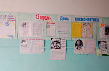 В рамках празднования 60-летия полета Ю.А.Гагарина в космос в школе оформлена выставка газет о космонавтах , подготовленных учащимися школы .