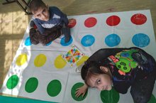 Сегодня ребята играли в "Мульттвистер". Ребята крутили барабан , на какой цвет указывала стрелка , такой вопрос. Зеленый цвет-загадка- персонаж . Красный цвет- мелодию нужно определить из мультфильма. Желтый цвет- зашифрована картинка.