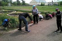 Сегодня воспитанники лагеря занялись благоустройством пришкольной территории.