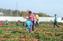 16 сентября учащиеся 5-11 классов вместе с учителями убирали морковь на хоккейной коробке.