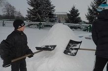 1 января 2015 года в школьном дворе проходил конкурс скульптур из снега. Решили сделать большие основы из снежных сугробов. Просмотрели скульптуры сделанные перед домами односельчан, выбрали понравившиеся и попросили помочь в изготовлении таких же скульптур перед школой.