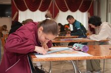 Работа индивидуальная, потому от каждой команды здесь по одному человеку. На задание отведён 1 час 20 минут. За это время юные геологи должны по карте оценить рельеф местности, представить структуру земной коры и отобразить разрез.