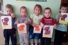 Сегодня дети младшей группы помогли щенку найти друзей (рисование жёсткой кистью методом тычка).