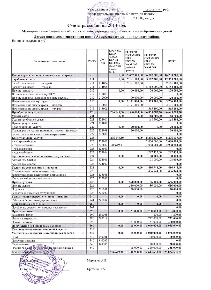 Отчет о кассовом поступлении и выбытии средств ДЮСШ на 1.01.2014