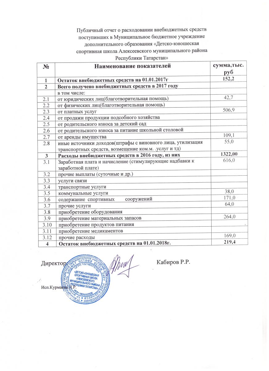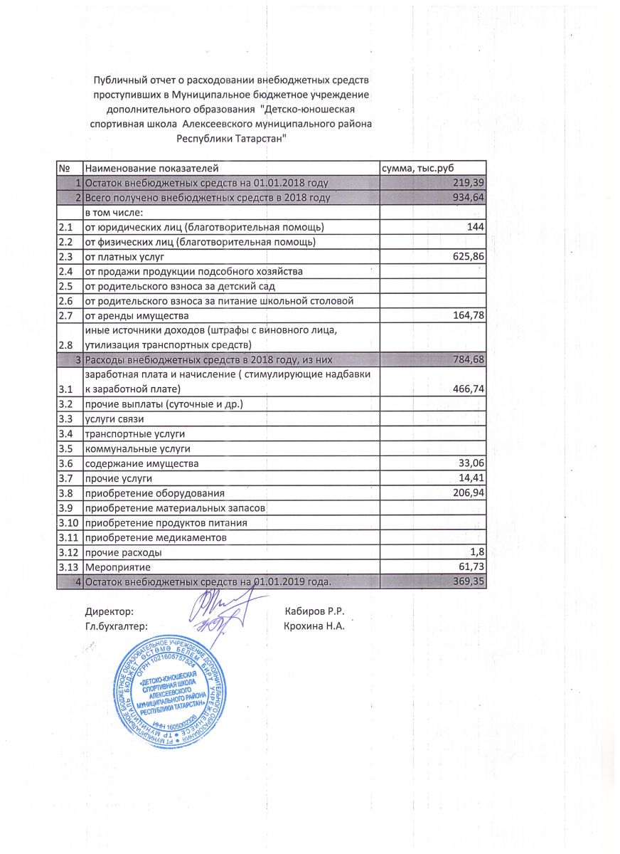 Публичный отчет о расходовании внебюджетных средств поступивших в МБУ "Спортивная школа Алексеевского муниципального района Республики Татарстан" за 2019 г.jpg