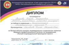 14 апреля в ГАПОУ «Чистопольском многопрофильном колледже» проходил Всероссийской конкурс индивидуальных студенческих проектов. Защищали проекты студентки 13с группы нашего коллежа Арефьева Арина и Валеева Диана и одержали победу в двух номинациях: