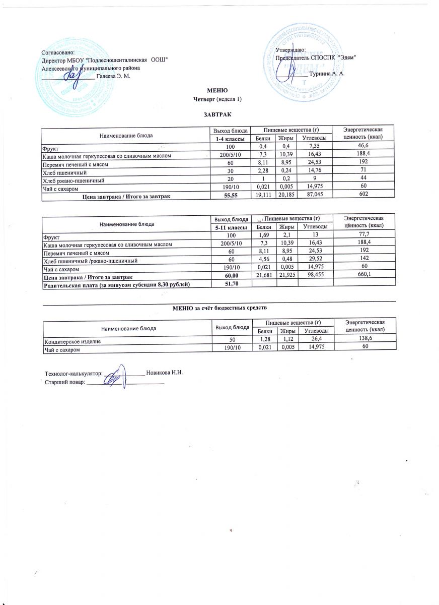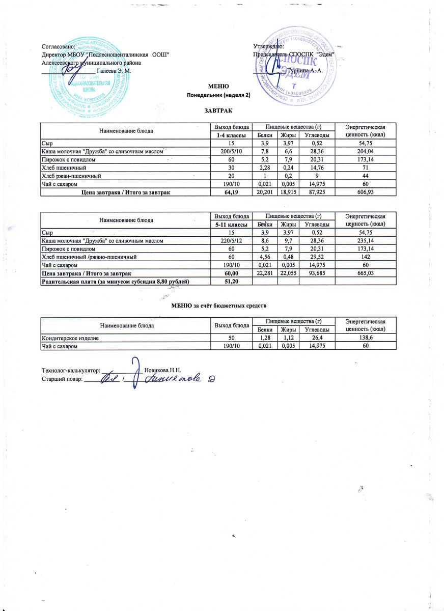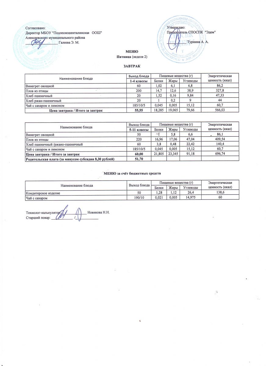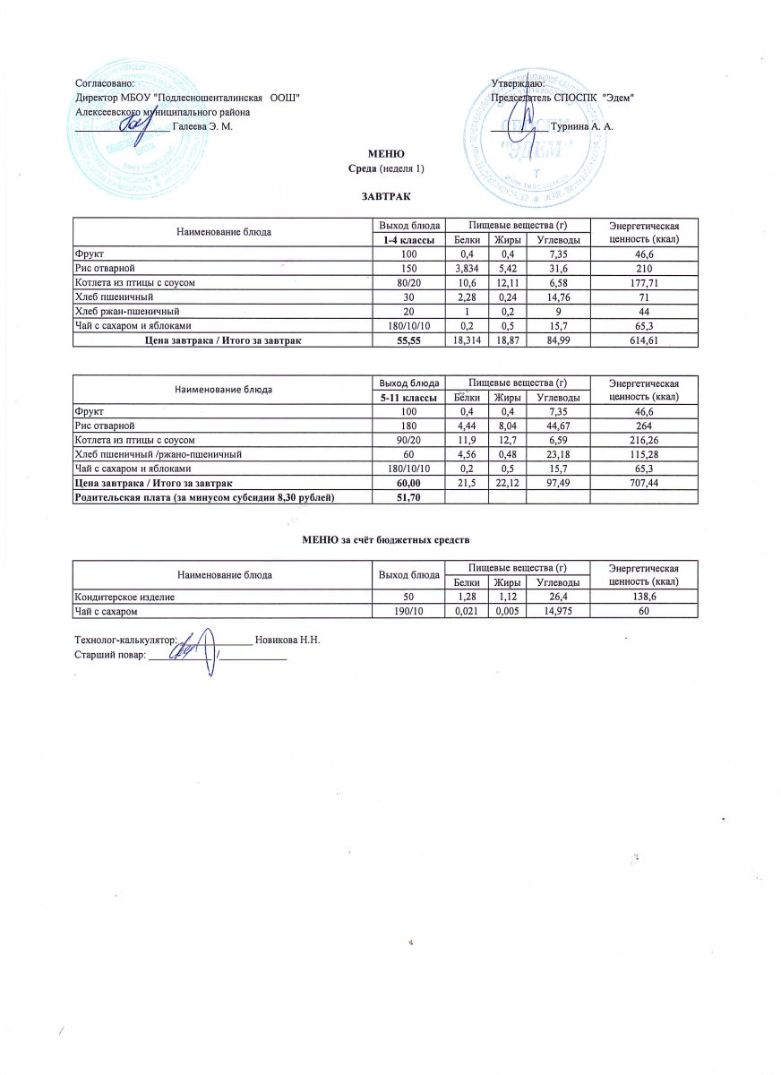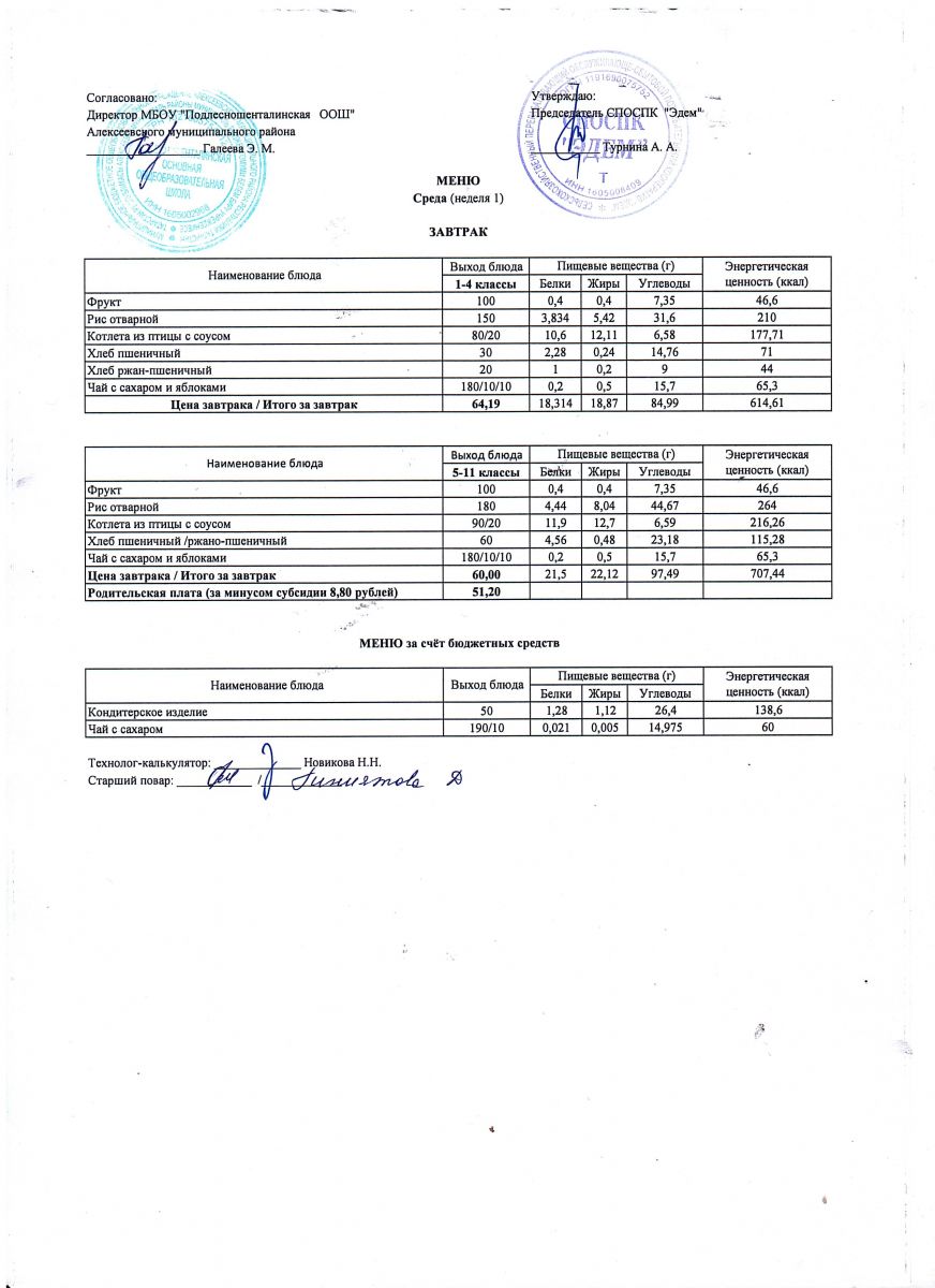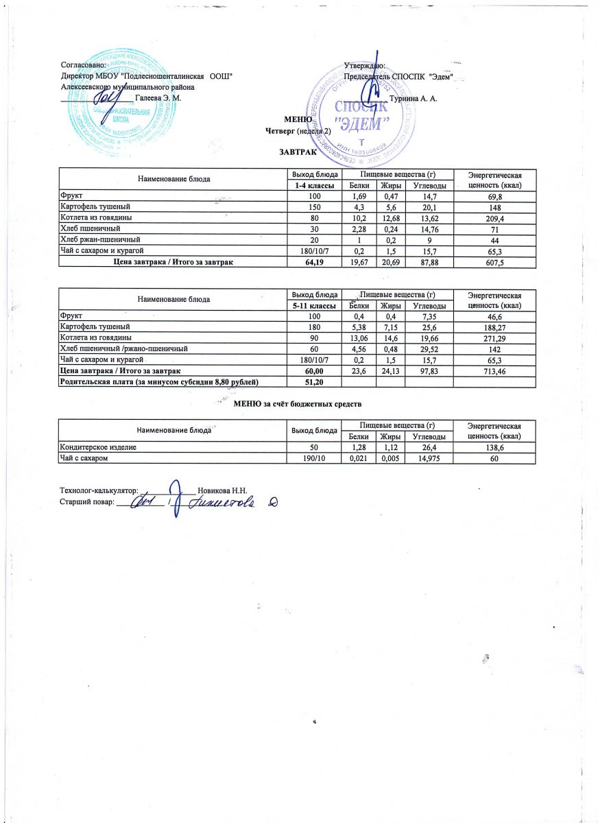 Ежедневное меню горячего питания обучающихся по образовательным программам начального общего образования: FOOD