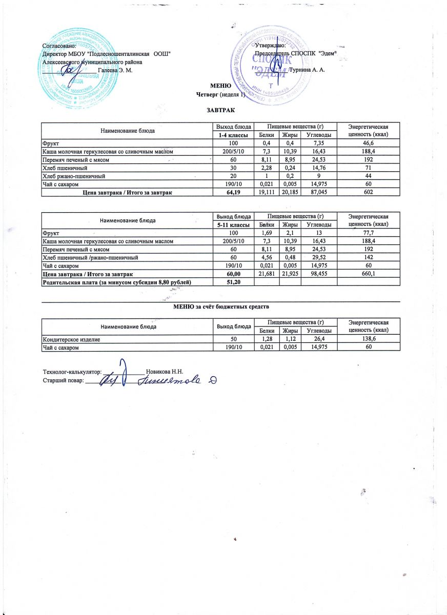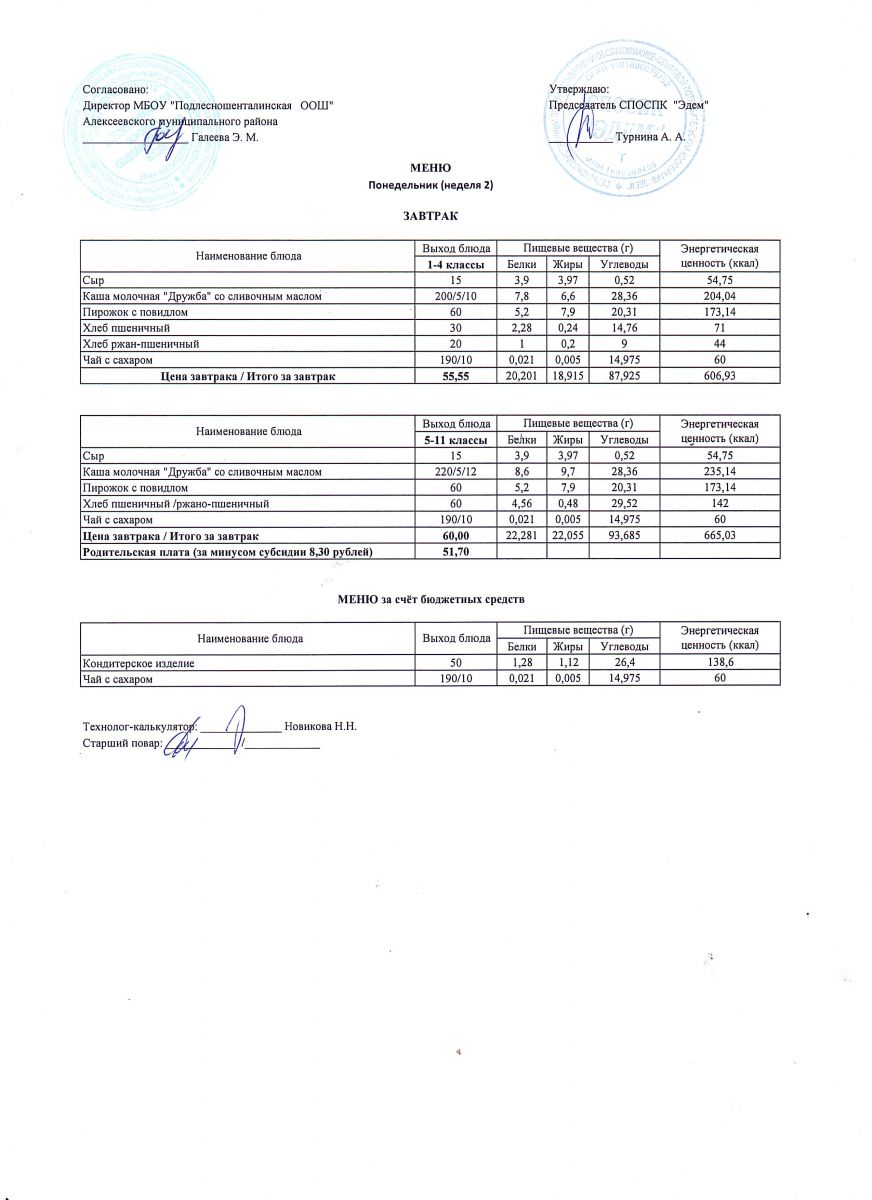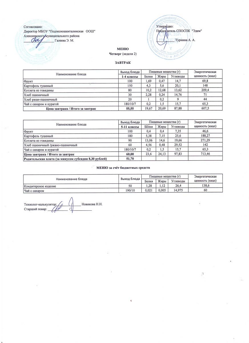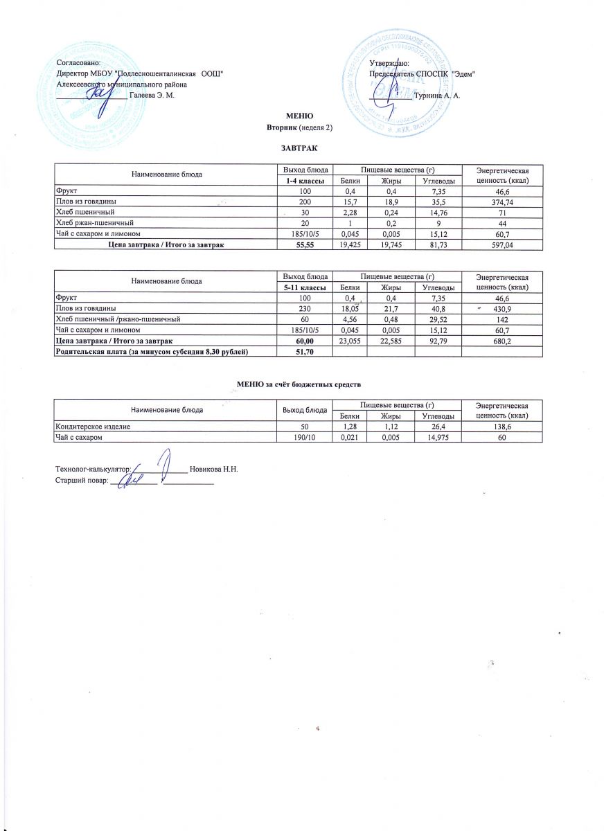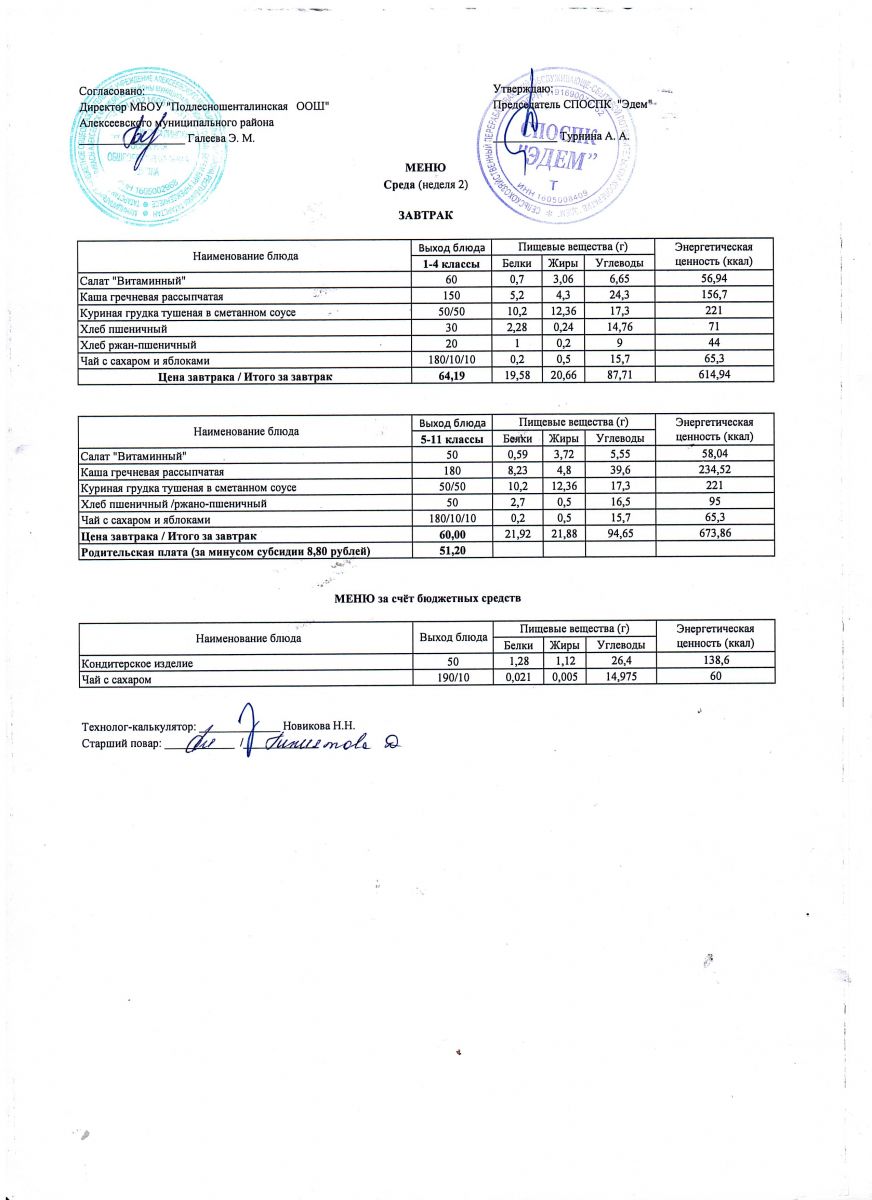 Ежедневное меню горячего питания обучающихся по образовательным программам начального общего образования: FOOD