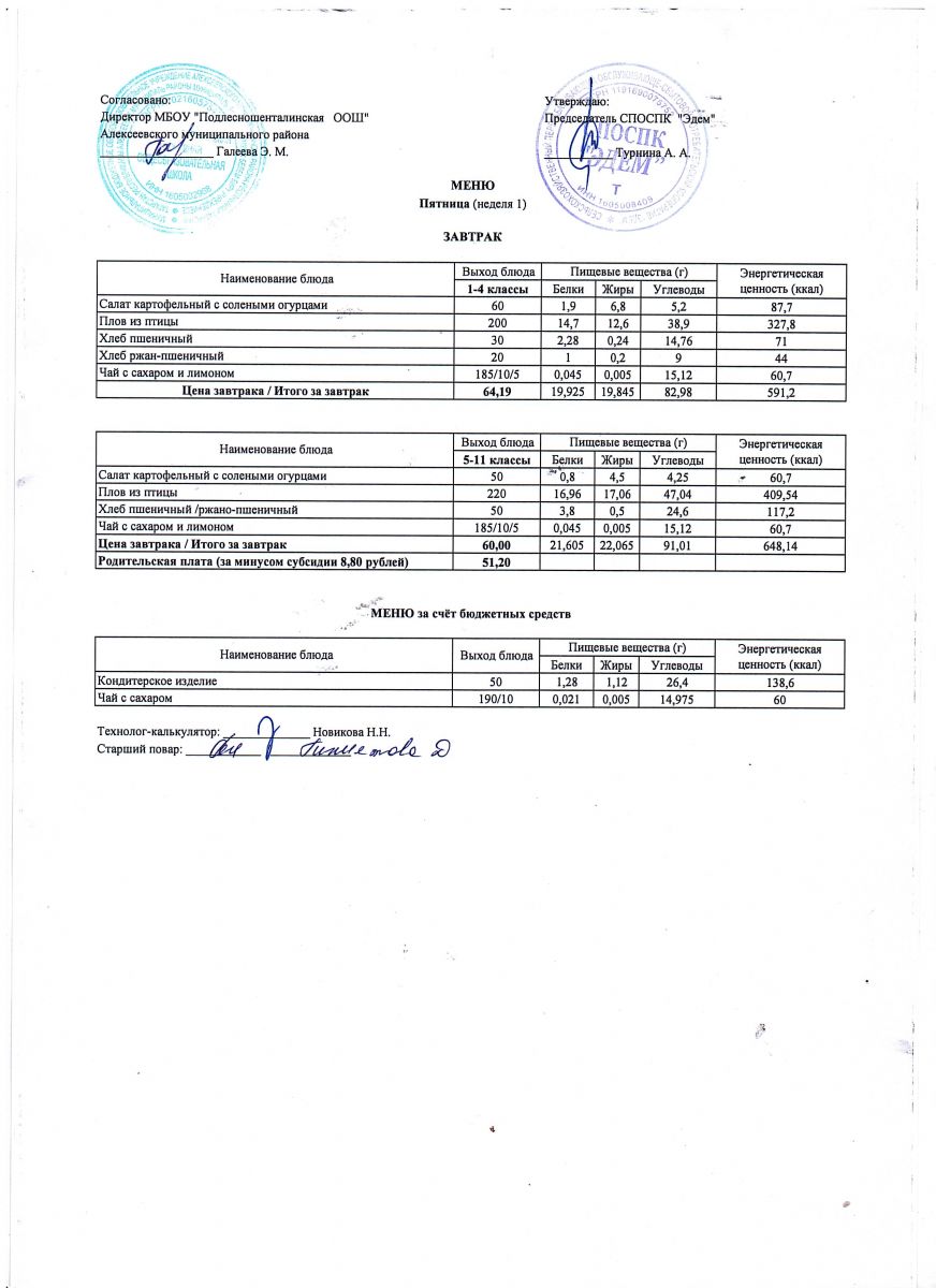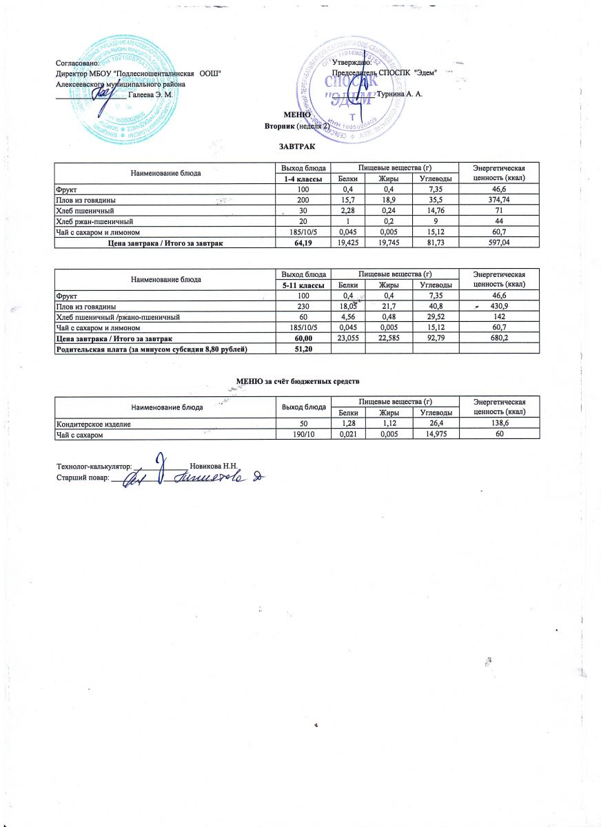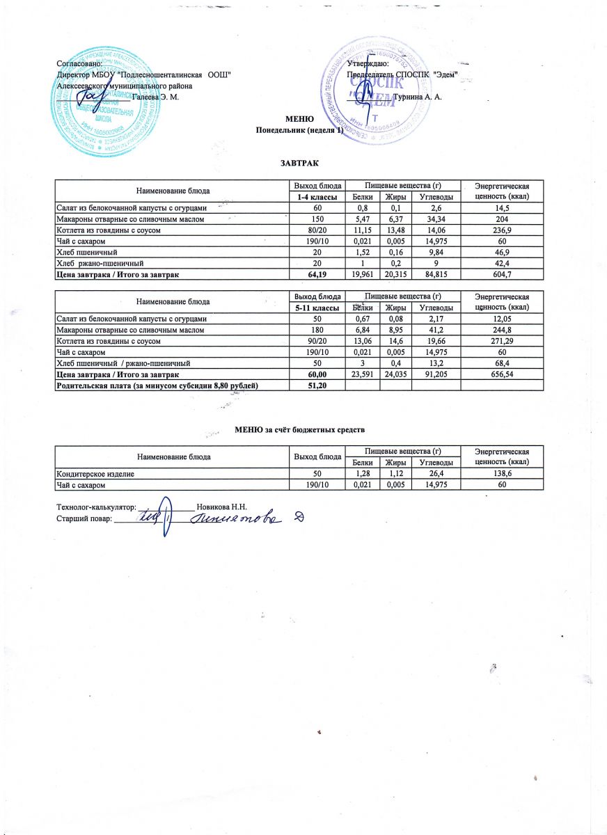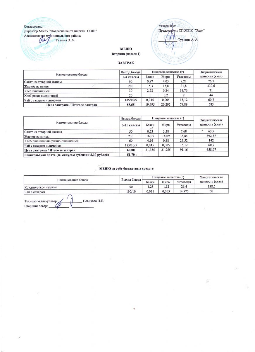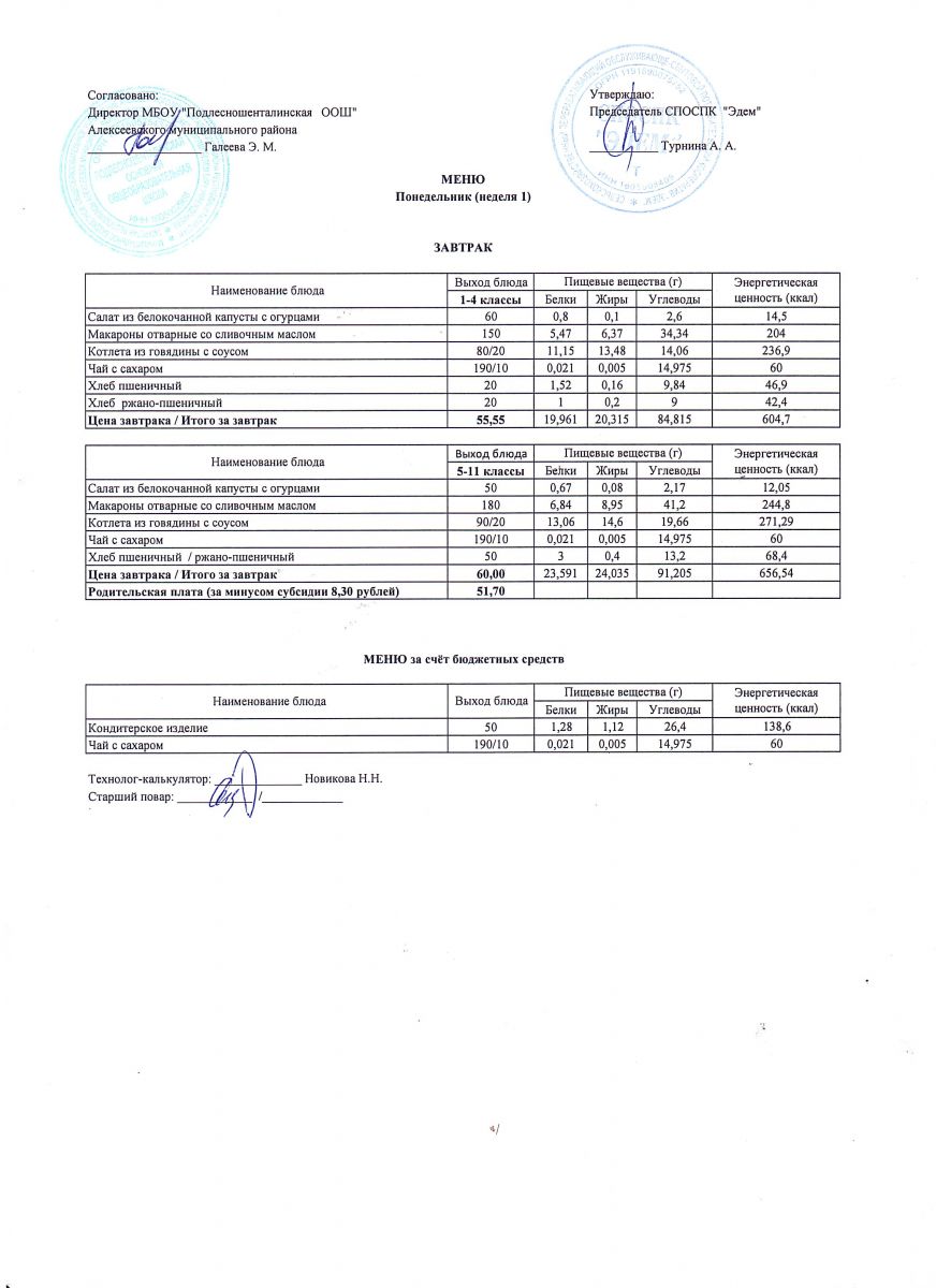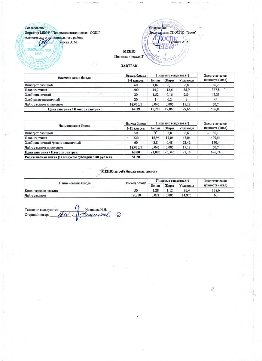 Ежедневное меню горячего питания обучающихся по образовательным программам начального общего образования: FOOD