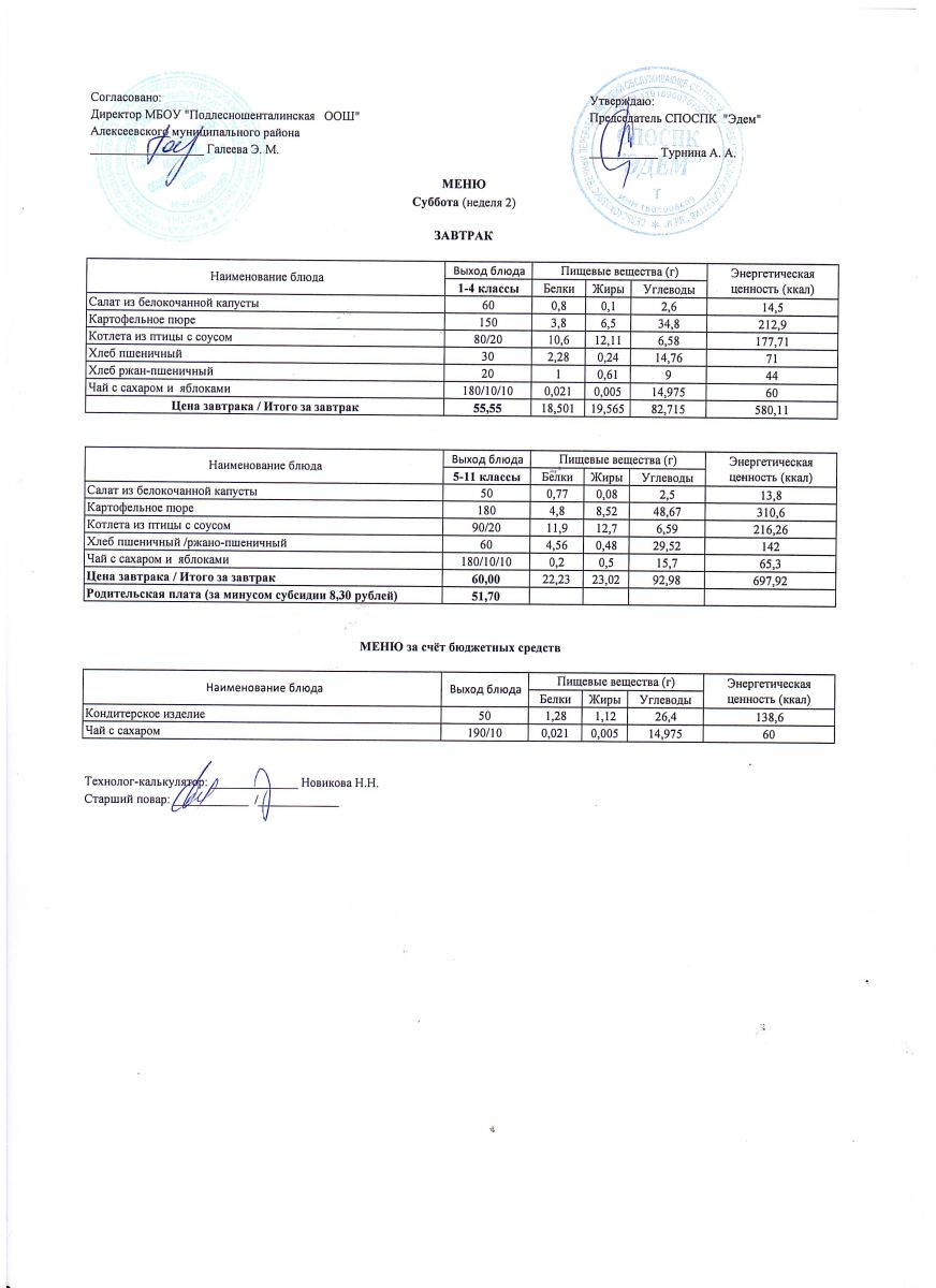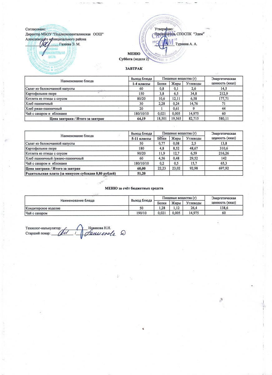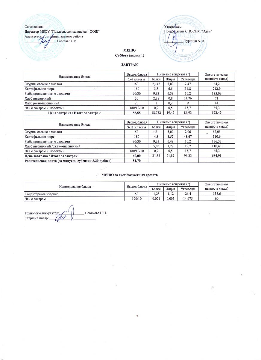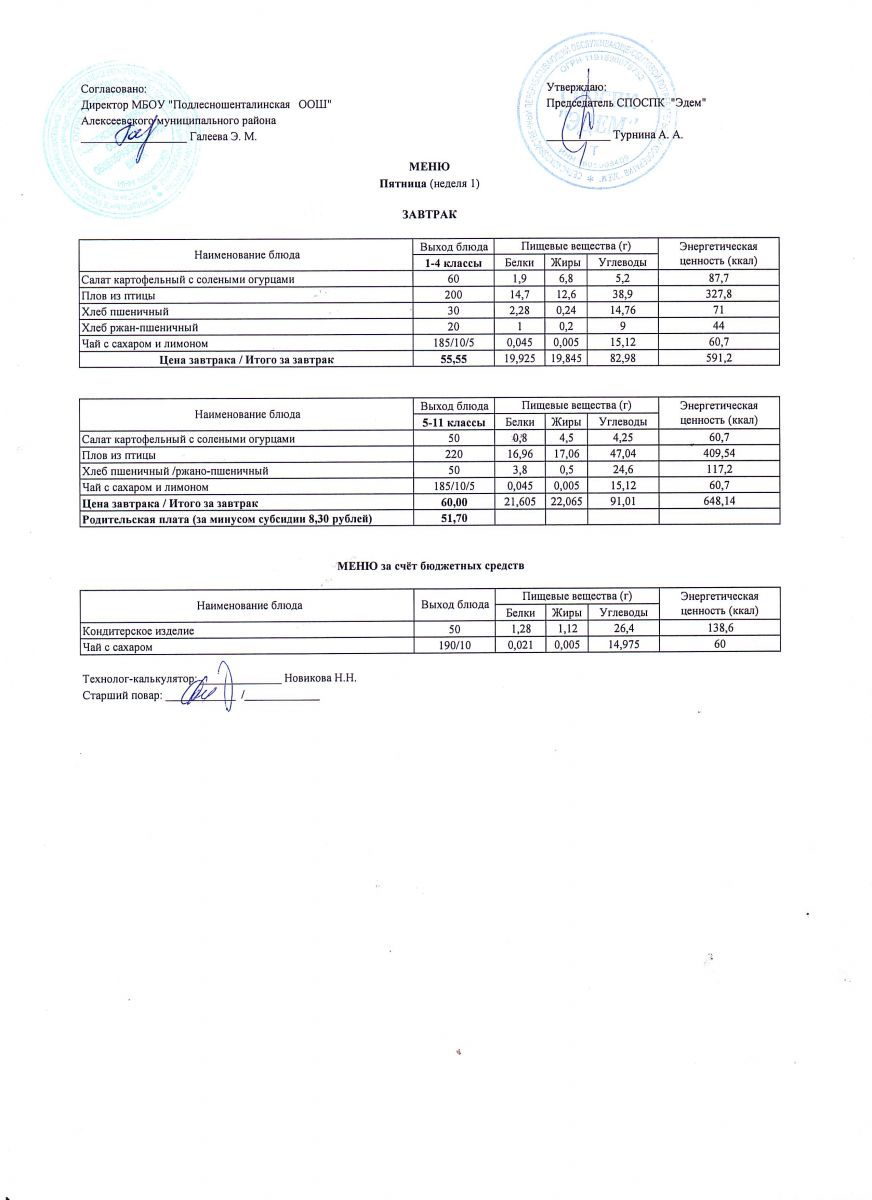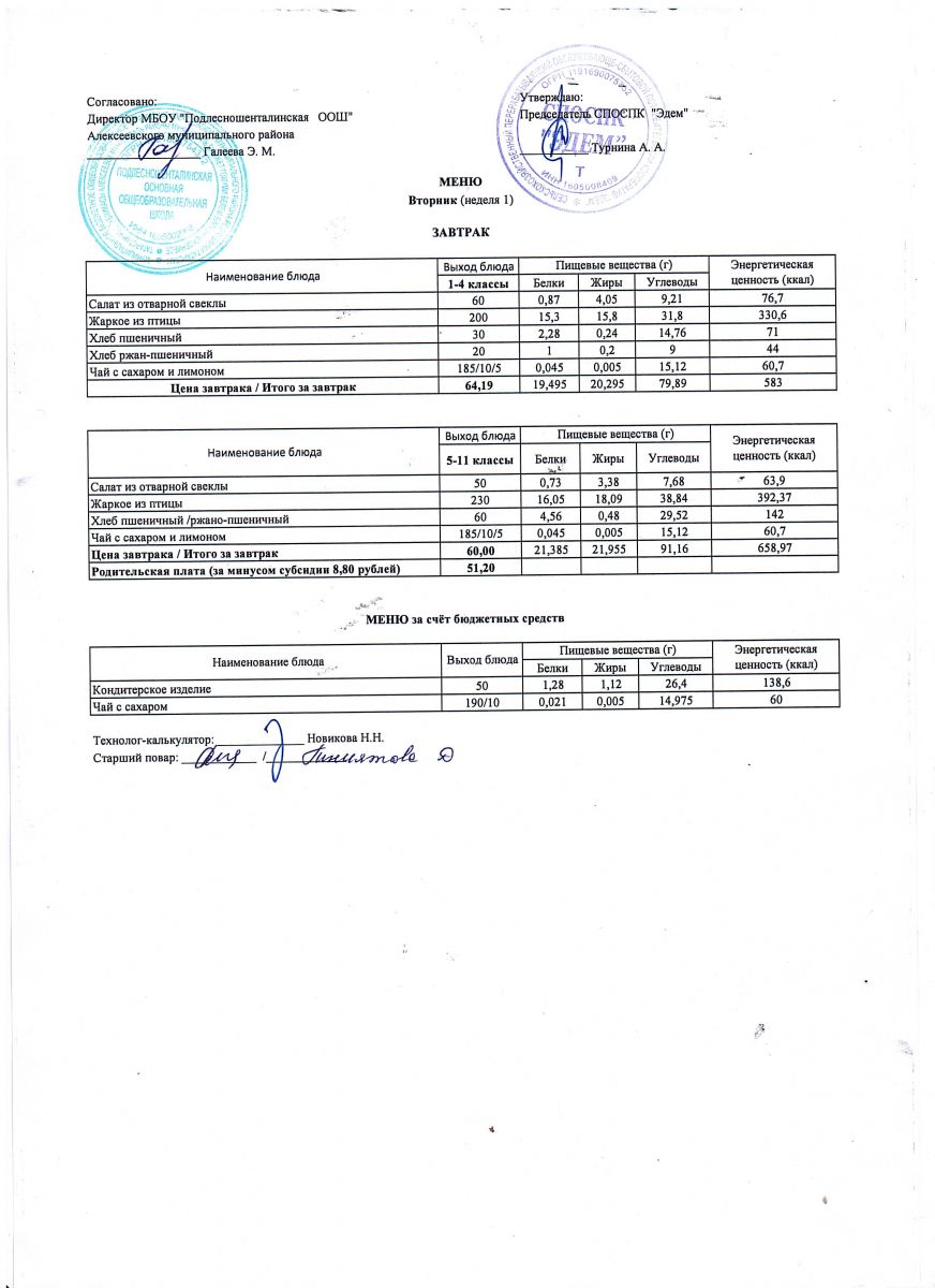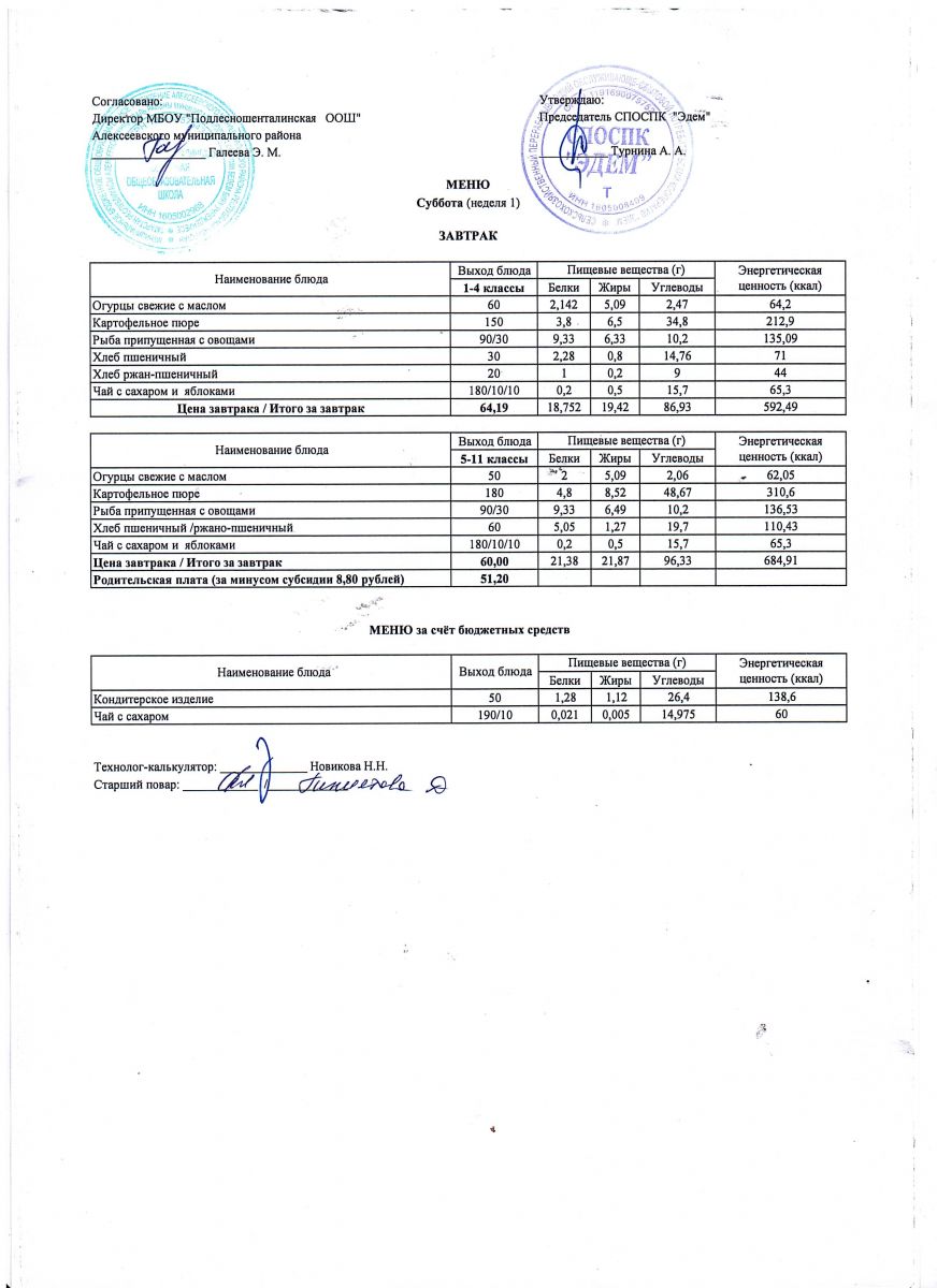 Ежедневное меню горячего питания обучающихся по образовательным программам начального общего образования: FOOD