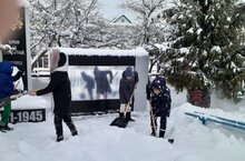 "Твори добро." В рамках месячника патриотического воспитания юнармейцы очистили памятник войнам ВОВ от снега.