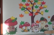 Дошкольная группа готовится к празднку "Осенний бал". Дети с удовольствием помогают воспитателям оформлять группу.