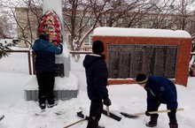 Ученики нашей школы стали участниками акции по очистке от снега памятников воинам-землякам, погибших в годы Великой Отечественной войны 1941 – 1945 гг