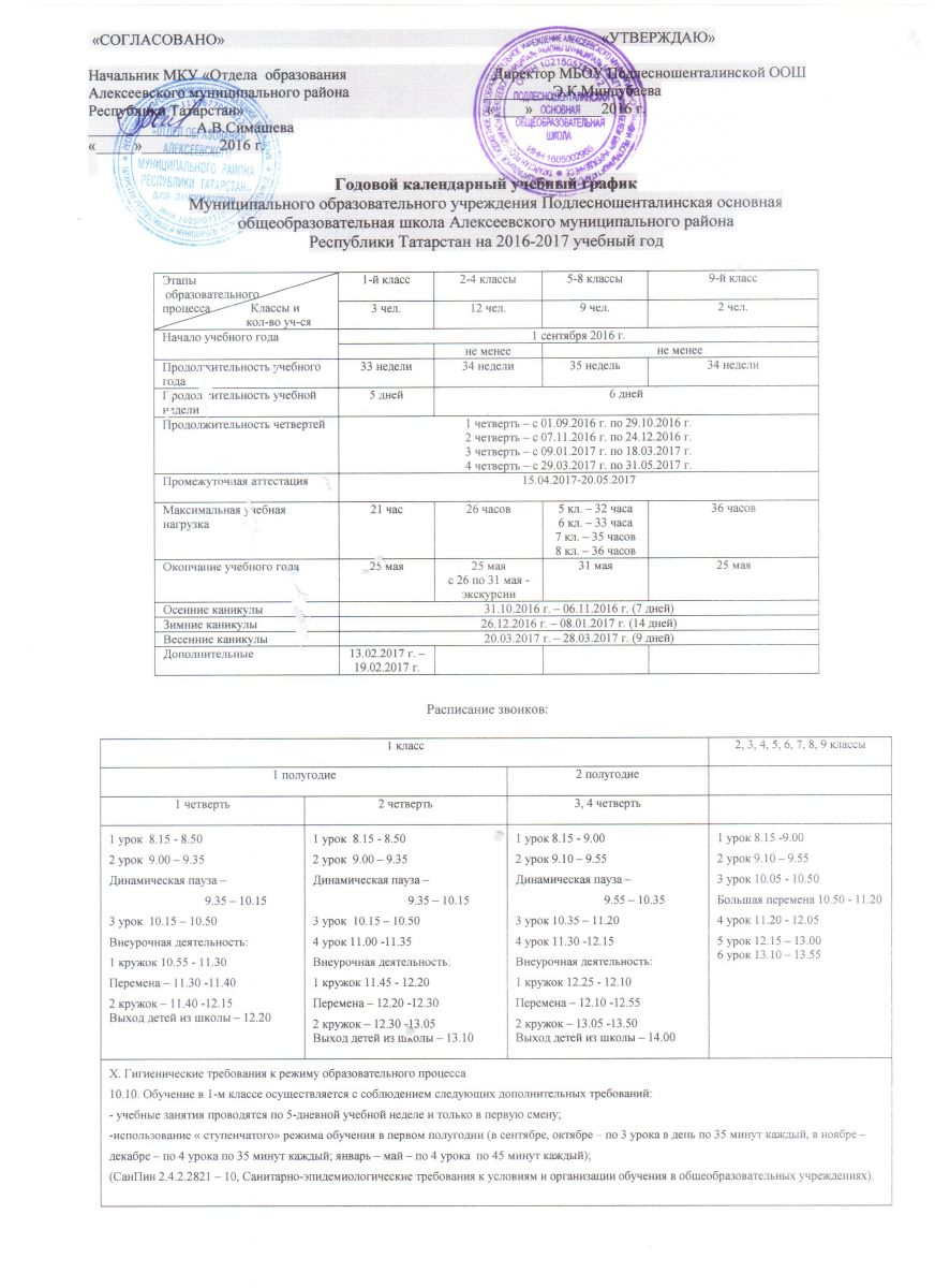 Годовой учебный календарный график/ Еллык календарь укыту графигы