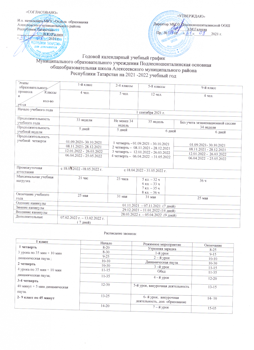 - Годовой календарный учебный график на 2021-2022 учебный год