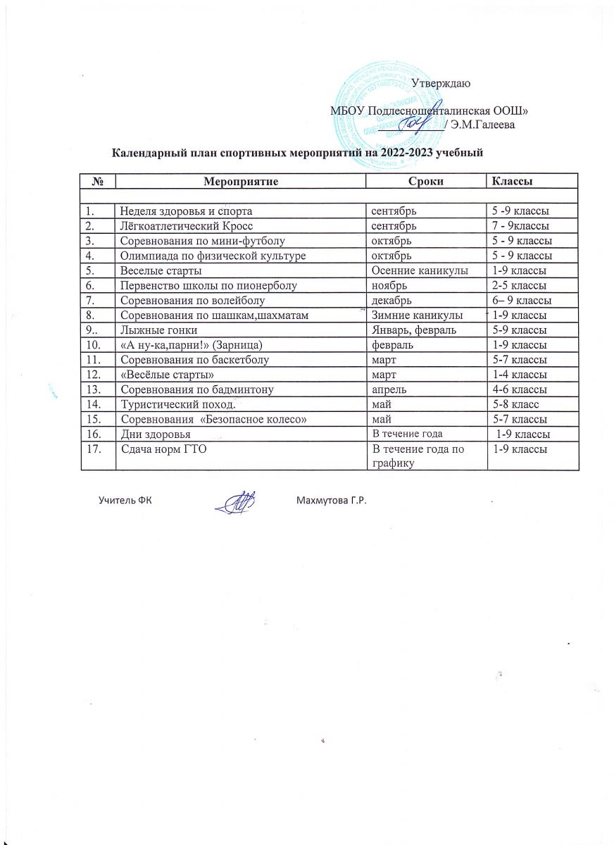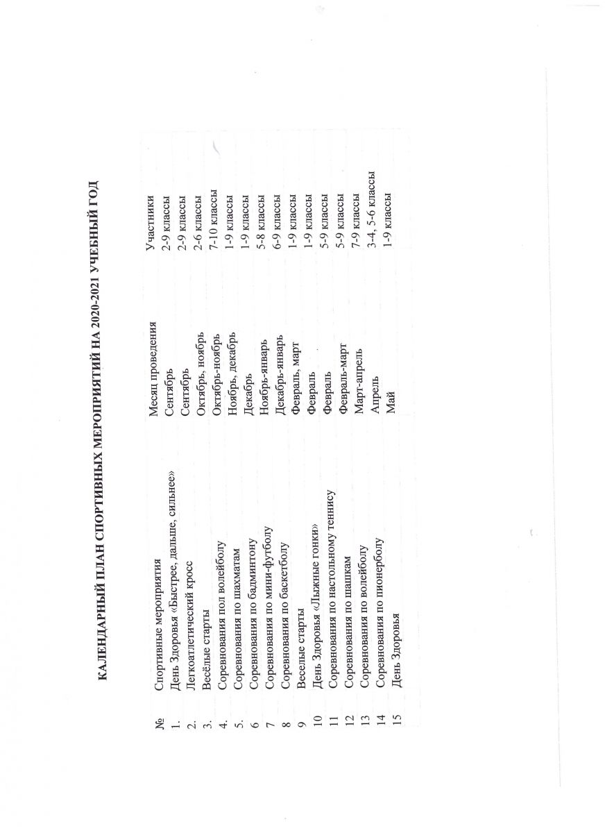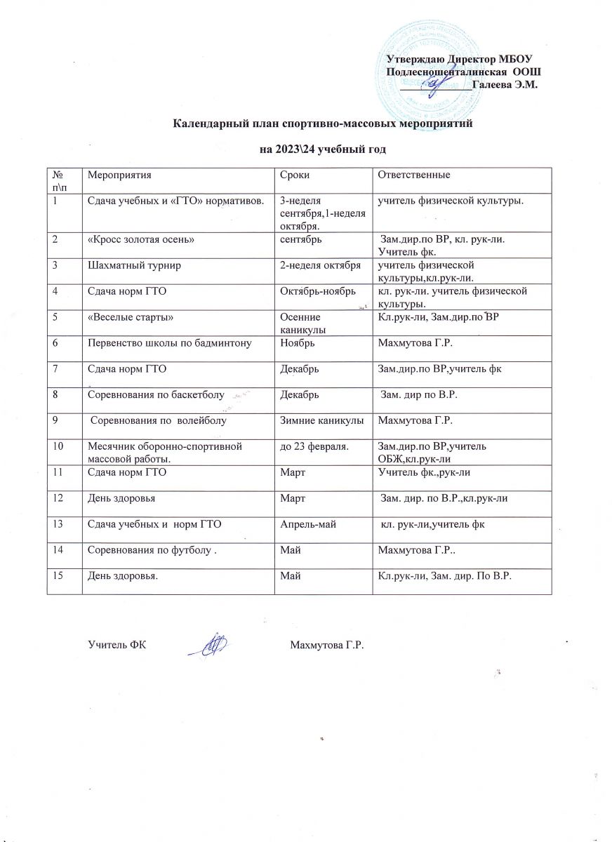 Календарный план спортивных мероприятий на 2023-2024 учебный год