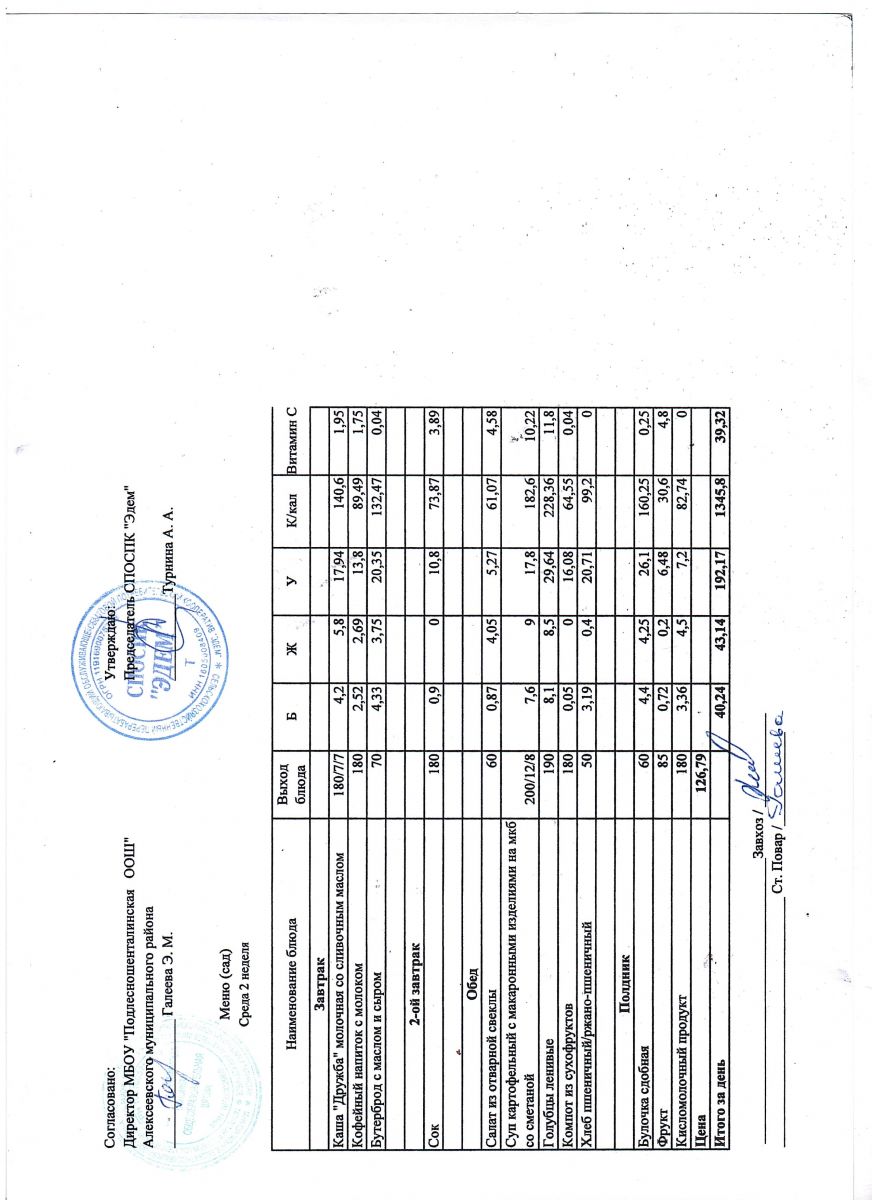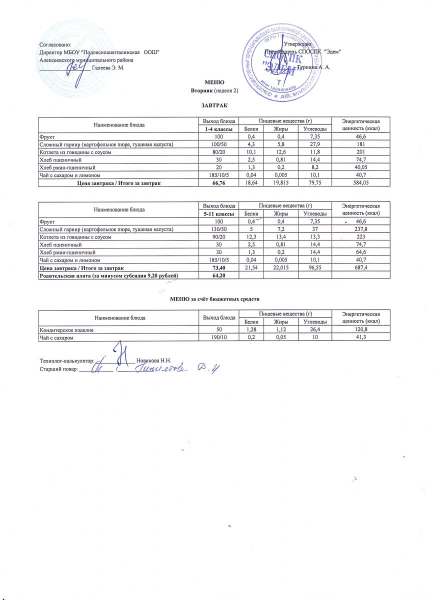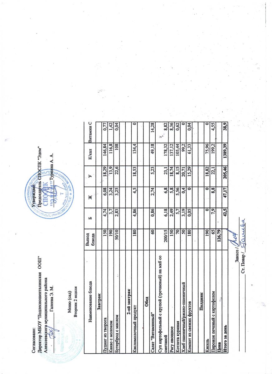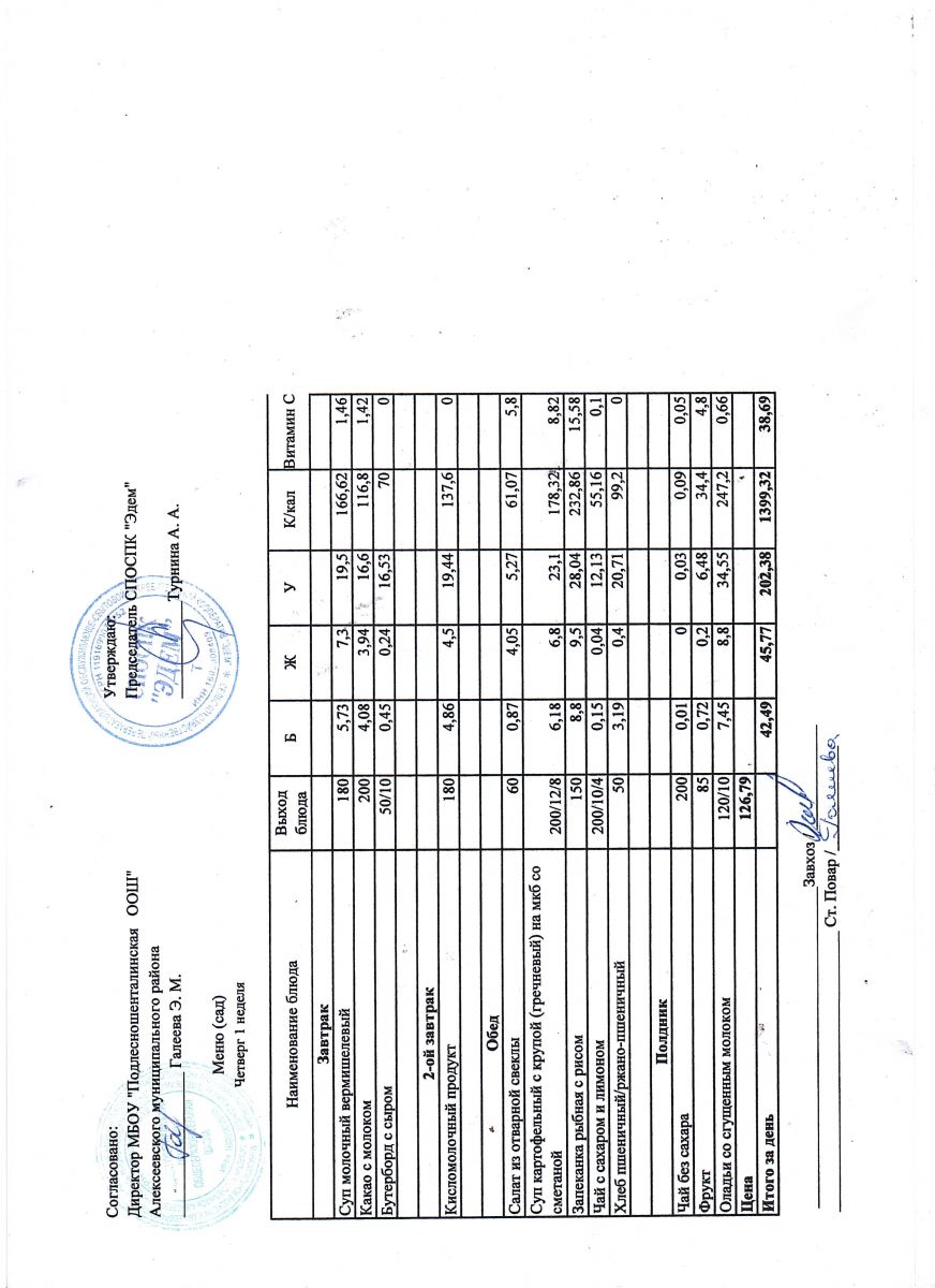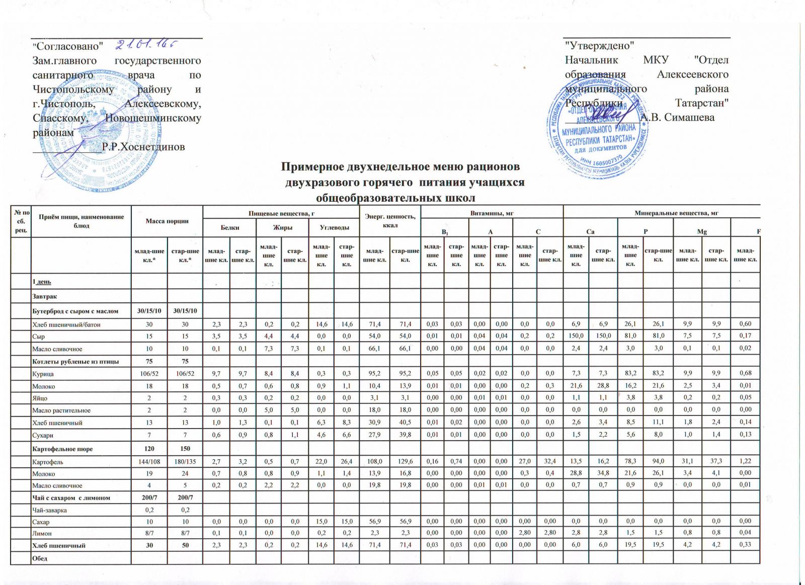 - Примерное двухнедельное меню рационов горячего питания в общеобразовательных организациях Алексеевского района на зимний и весенний период 2020 года Меню для сельских школ