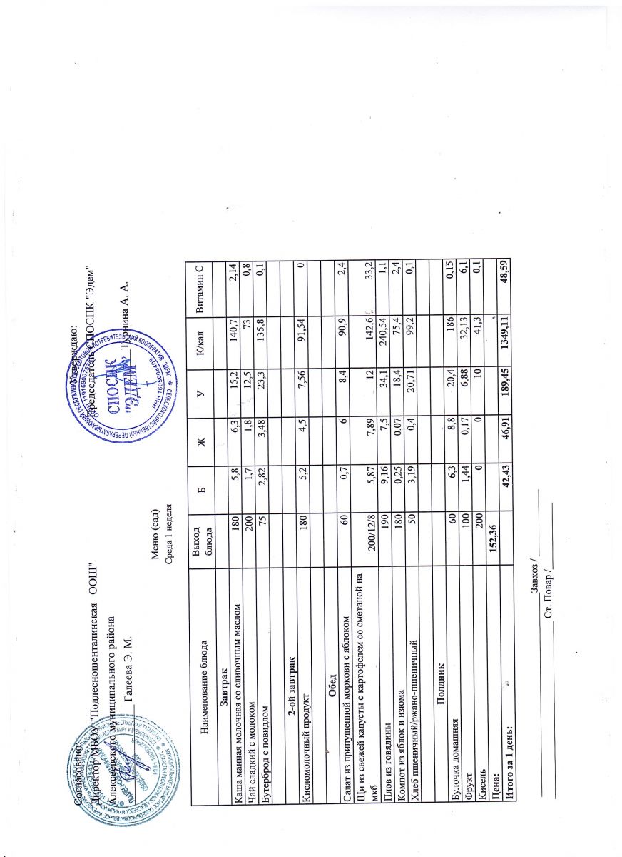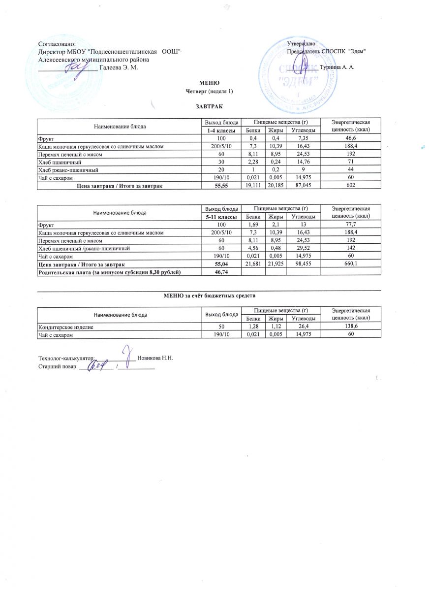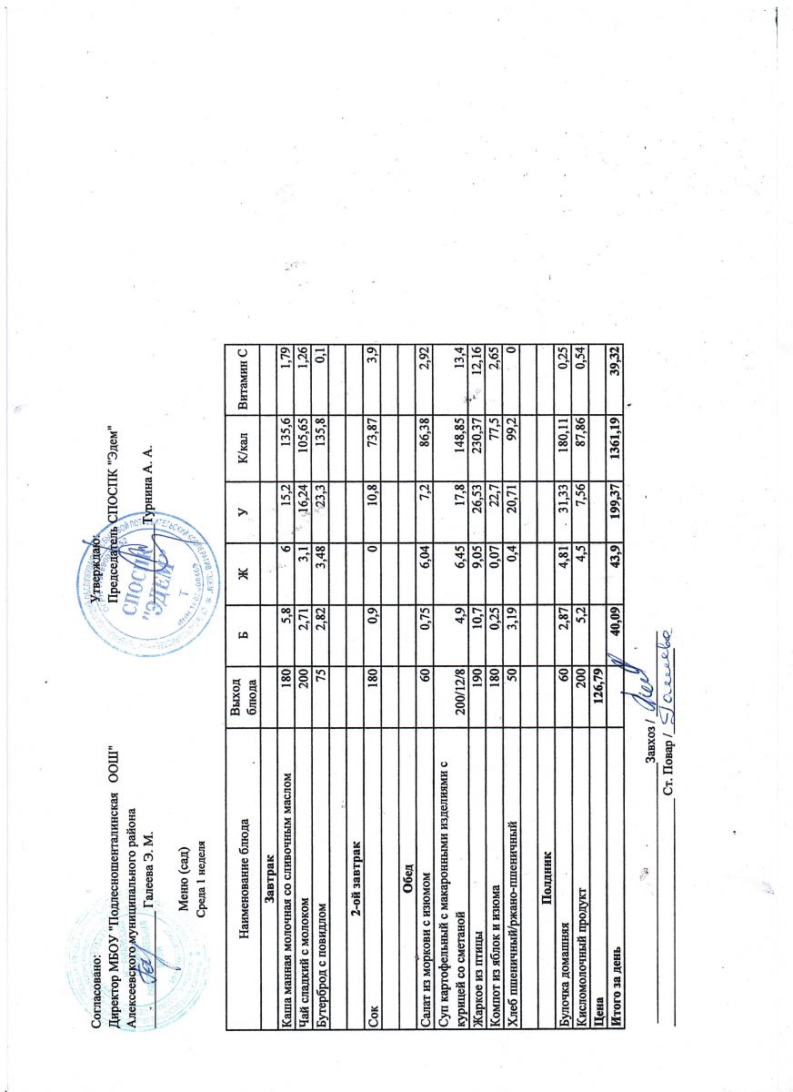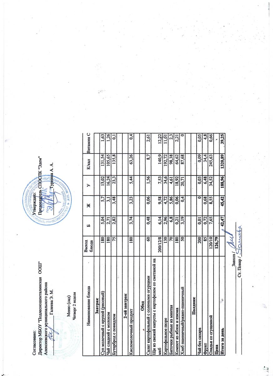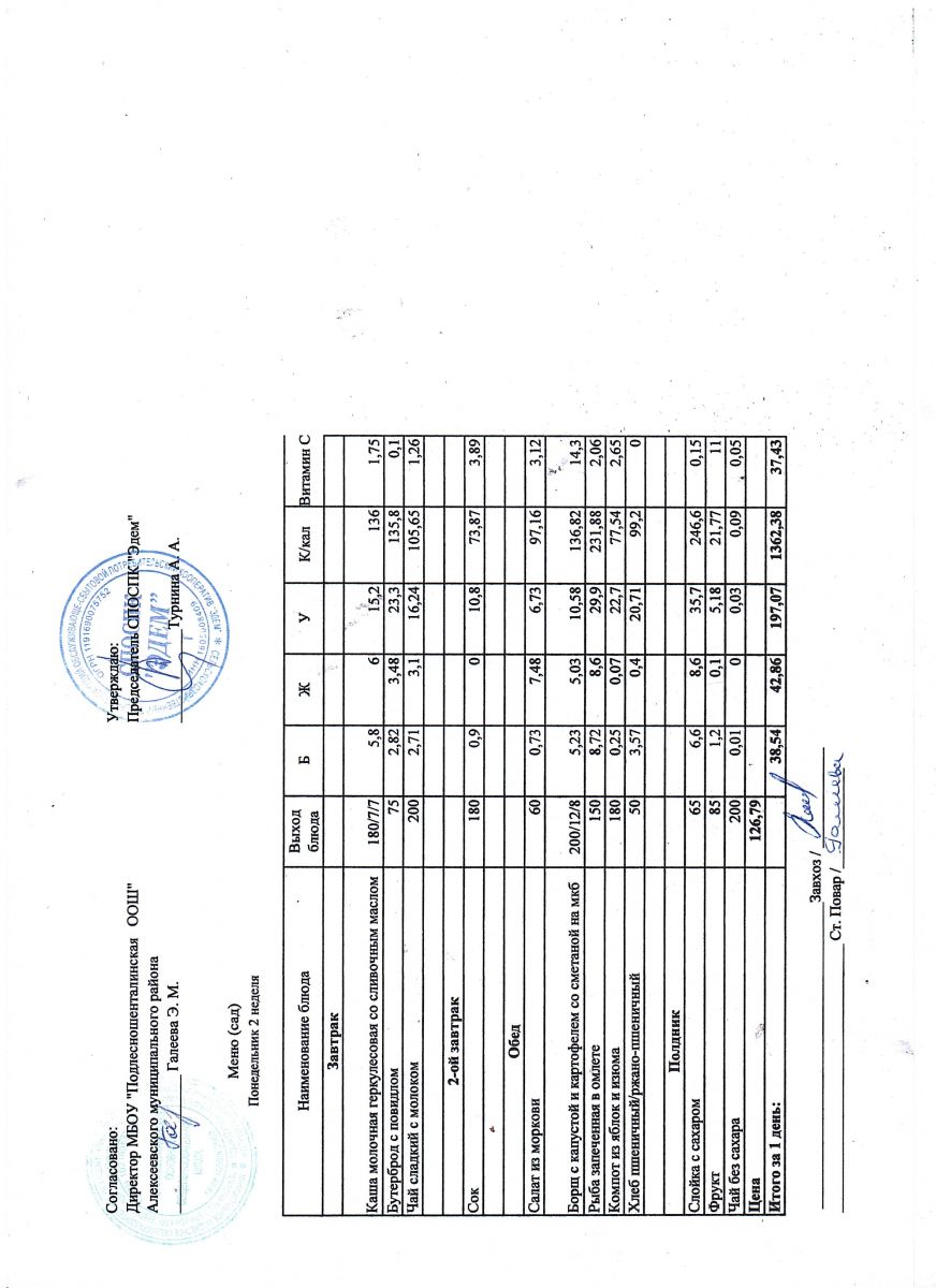 - Примерное двухнедельное меню рационов горячего питания в общеобразовательных организациях Алексеевского района на зимний и весенний период 2020 года Меню для сельских школ