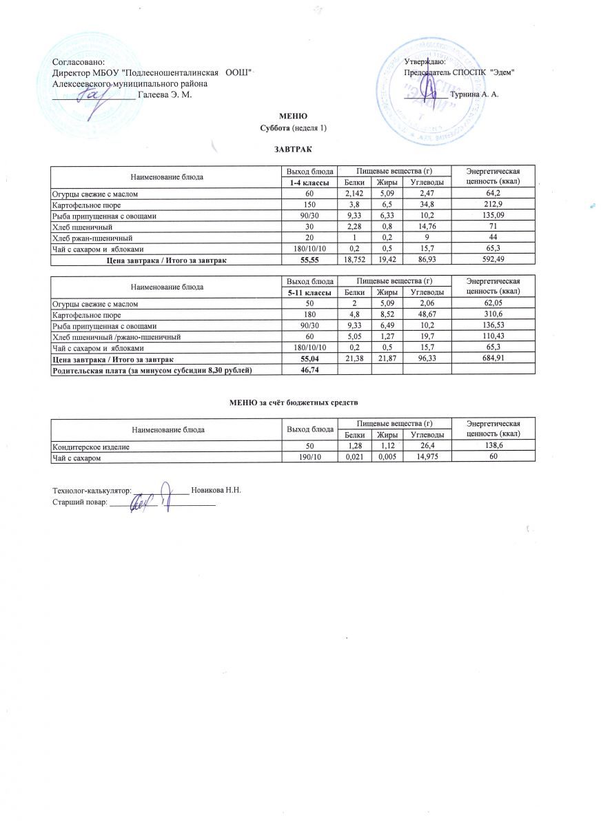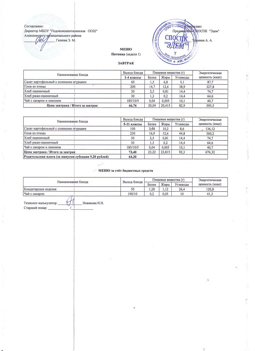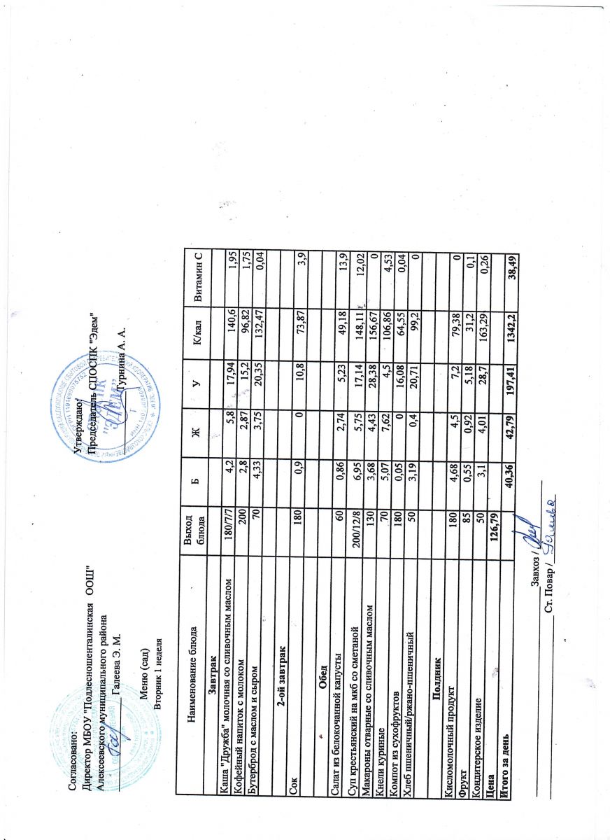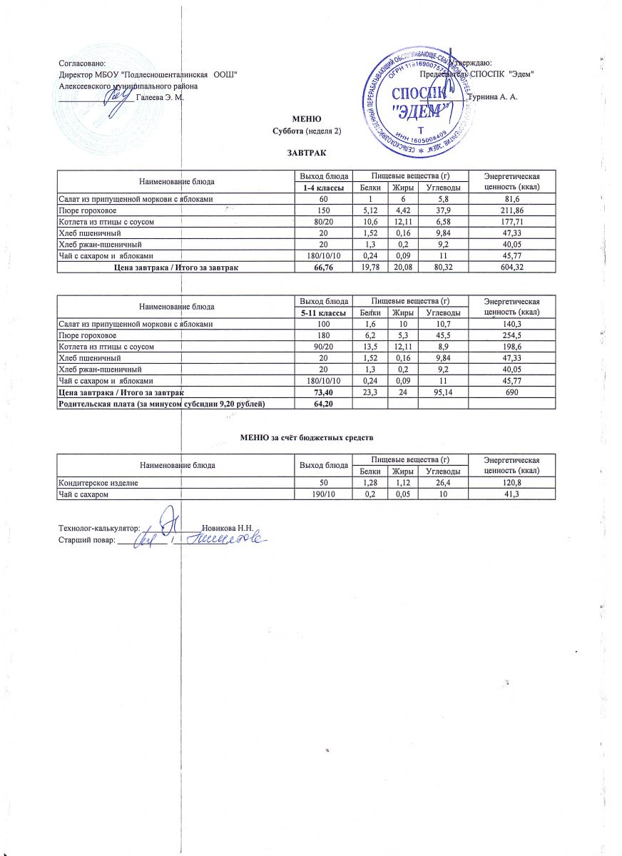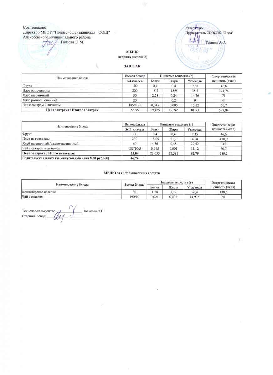 - Примерное двухнедельное меню рационов горячего питания в общеобразовательных организациях Алексеевского района на зимний и весенний период 2020 года Меню для сельских школ