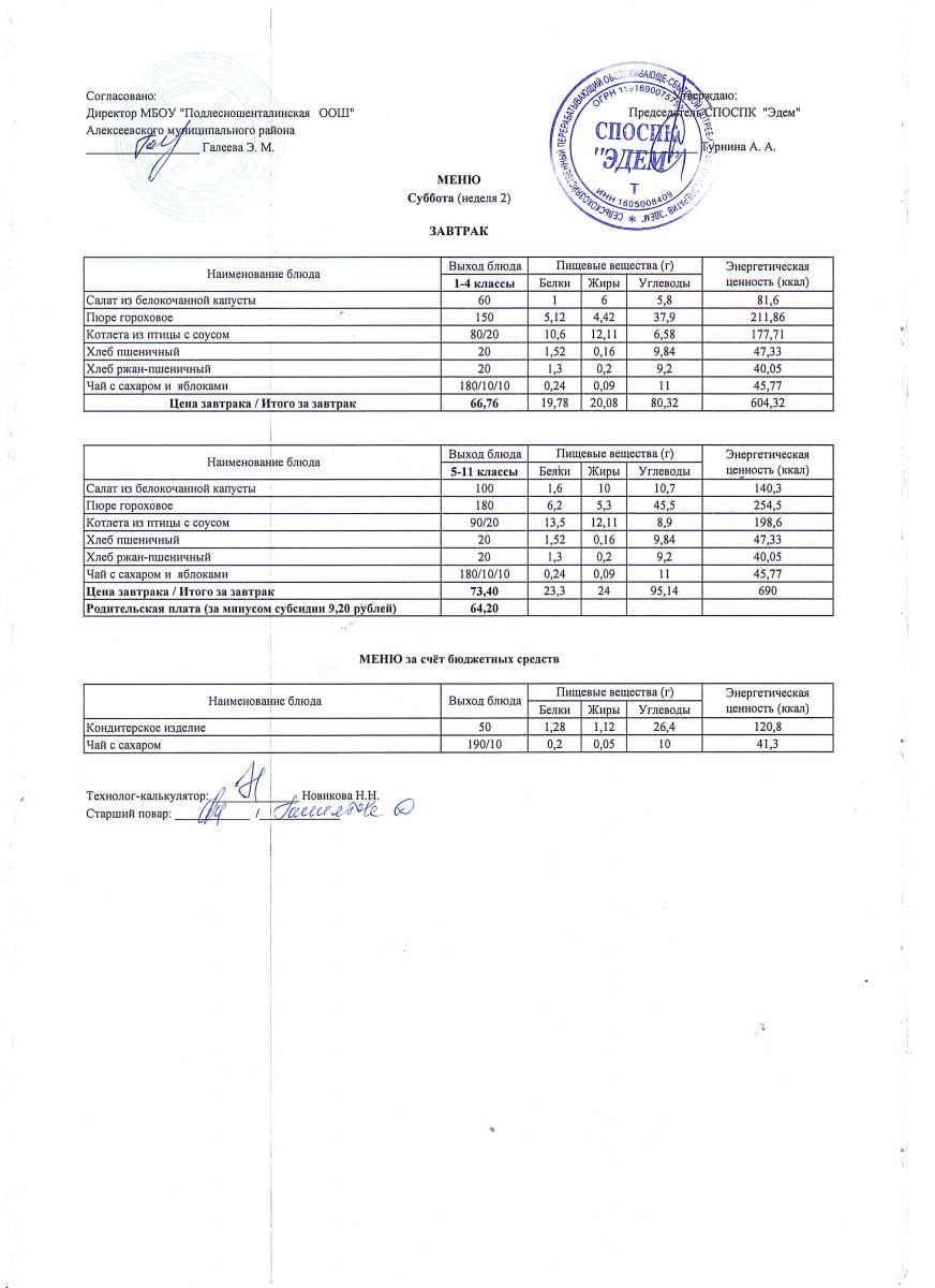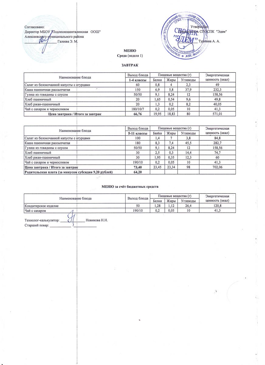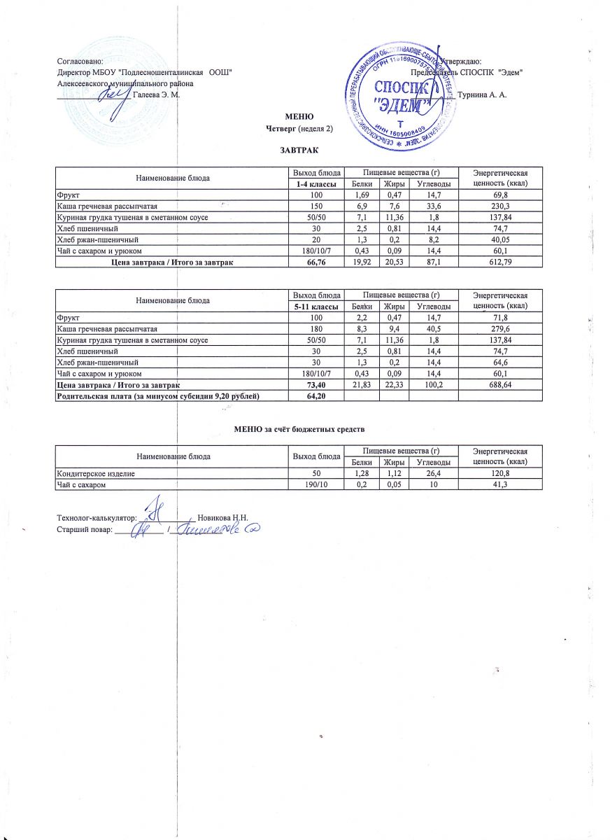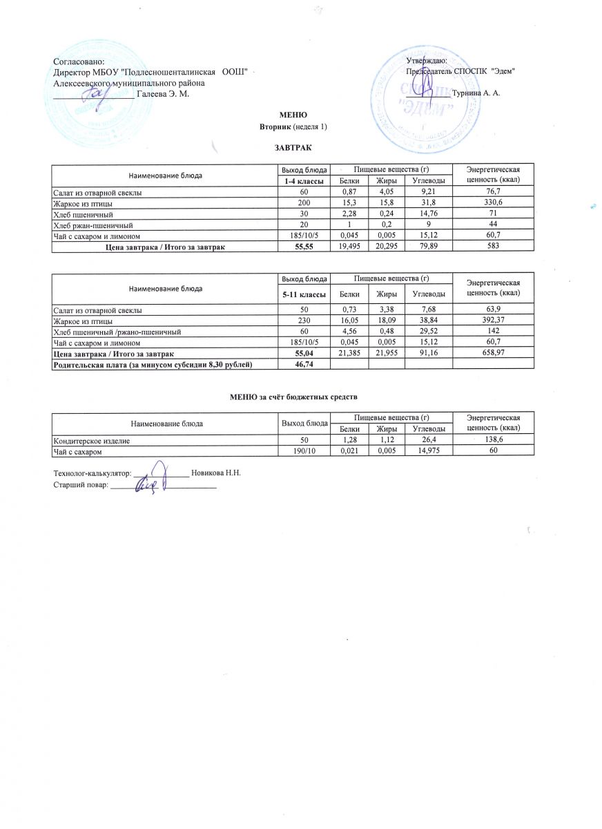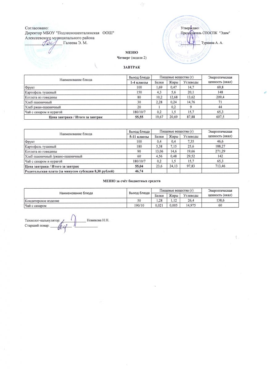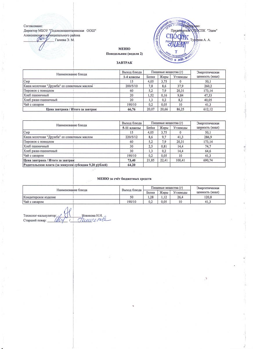 - Примерное двухнедельное меню рационов горячего питания в общеобразовательных организациях Алексеевского района на зимний и весенний период 2020 года Меню для сельских школ