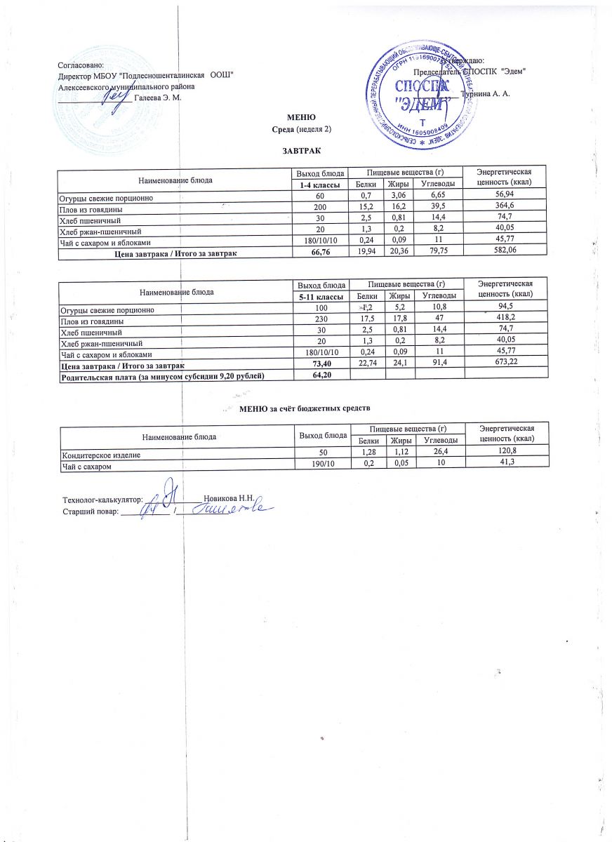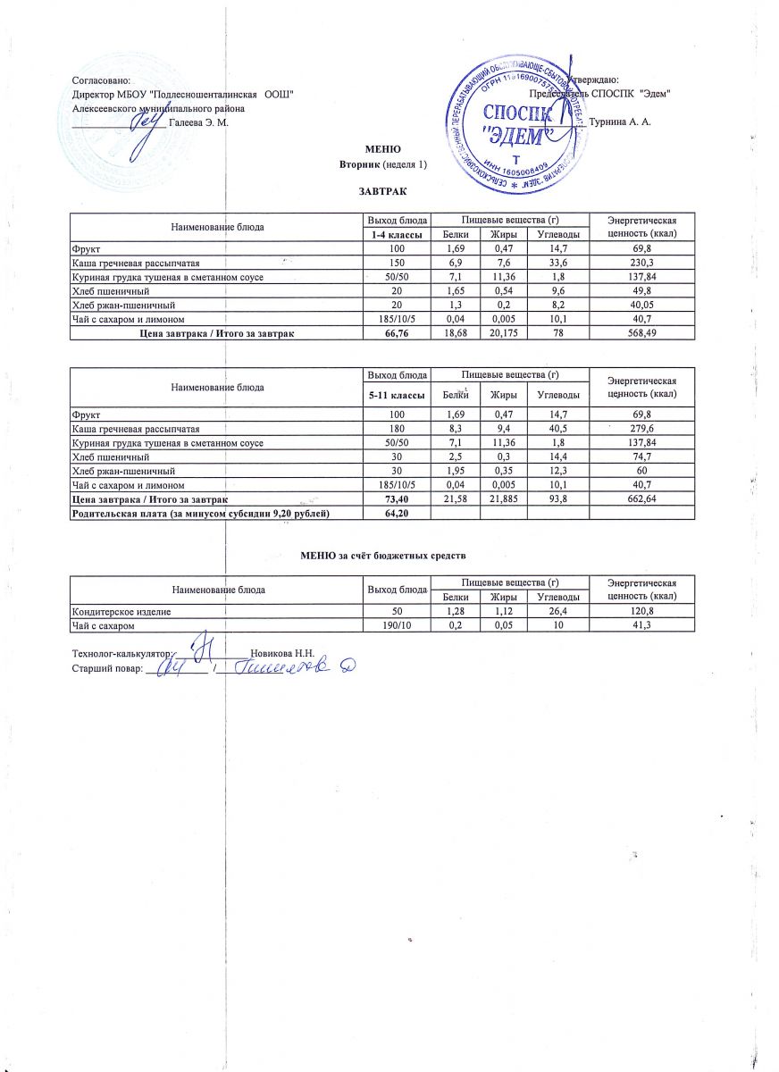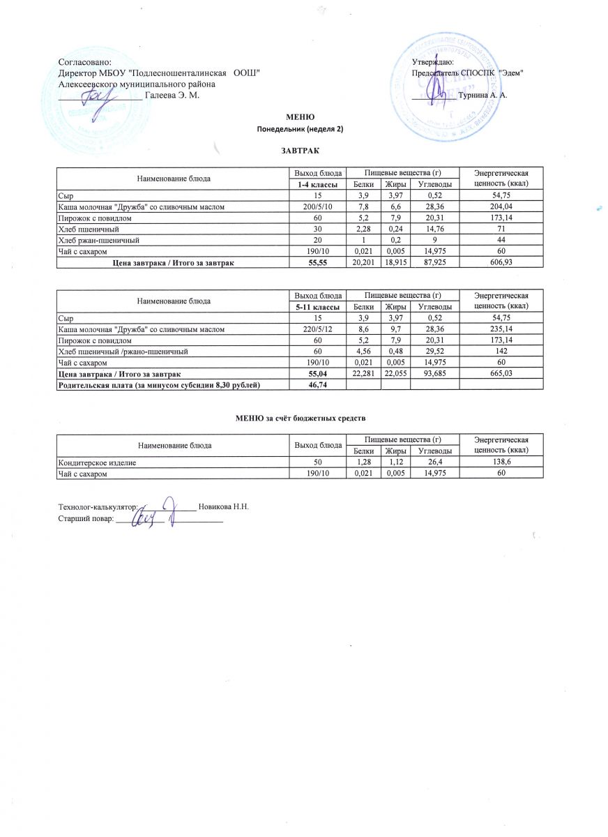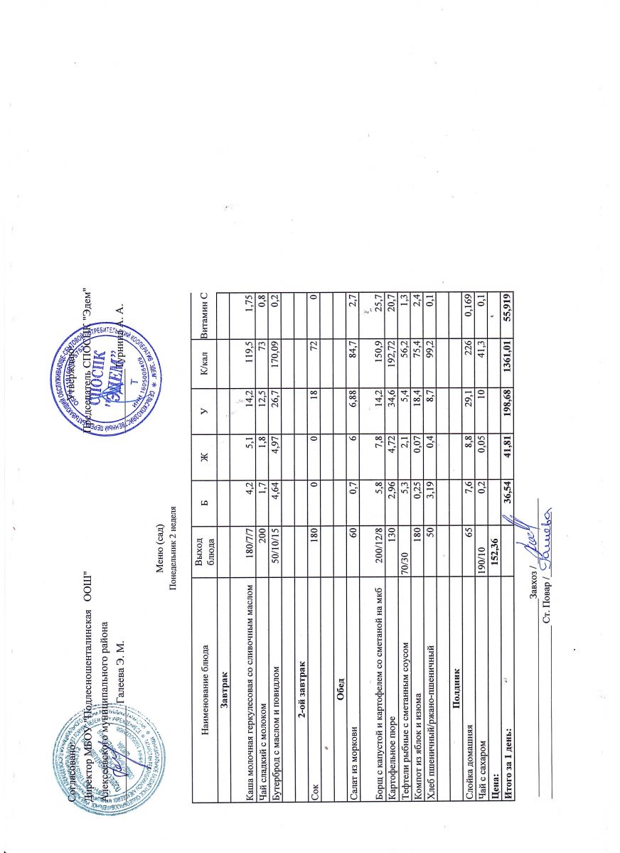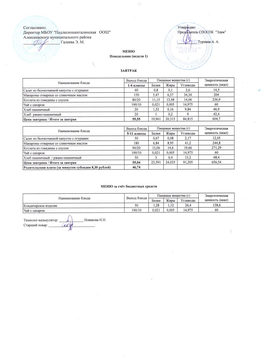- Примерное двухнедельное меню рационов горячего питания в общеобразовательных организациях Алексеевского района на зимний и весенний период 2020 года Меню для сельских школ