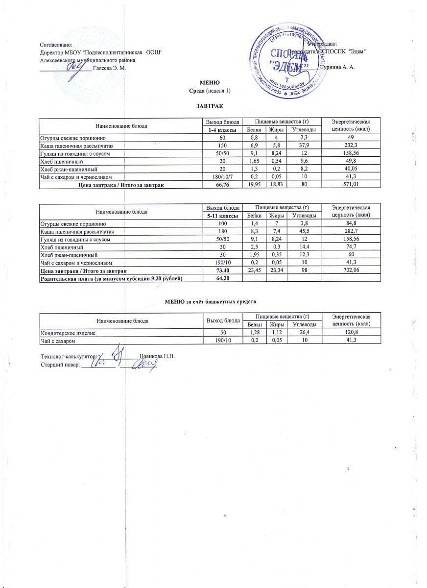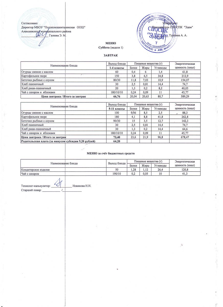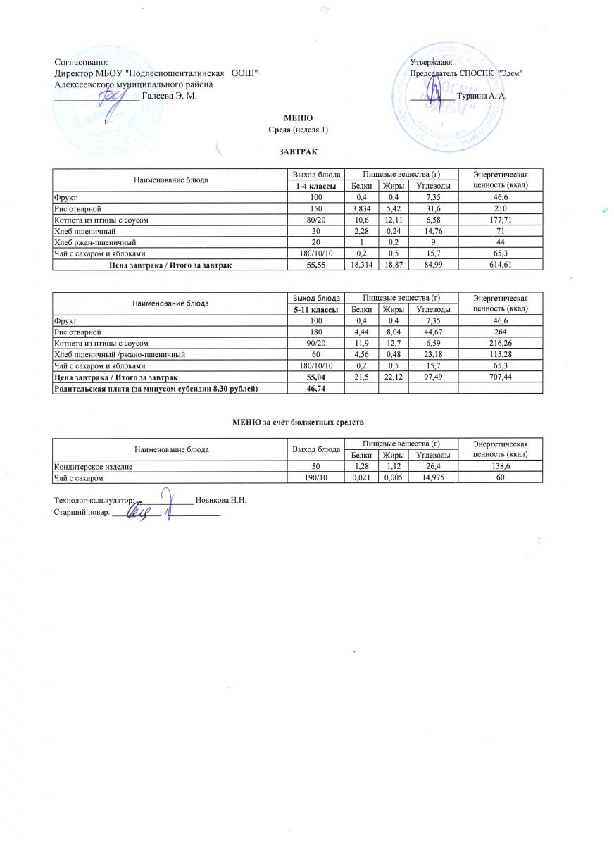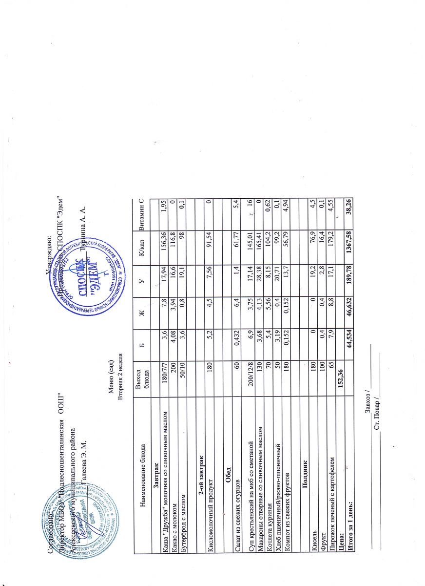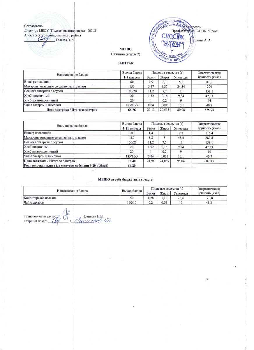 - Примерное двухнедельное меню рационов горячего питания в общеобразовательных организациях Алексеевского района на зимний и весенний период 2020 года Меню для сельских школ