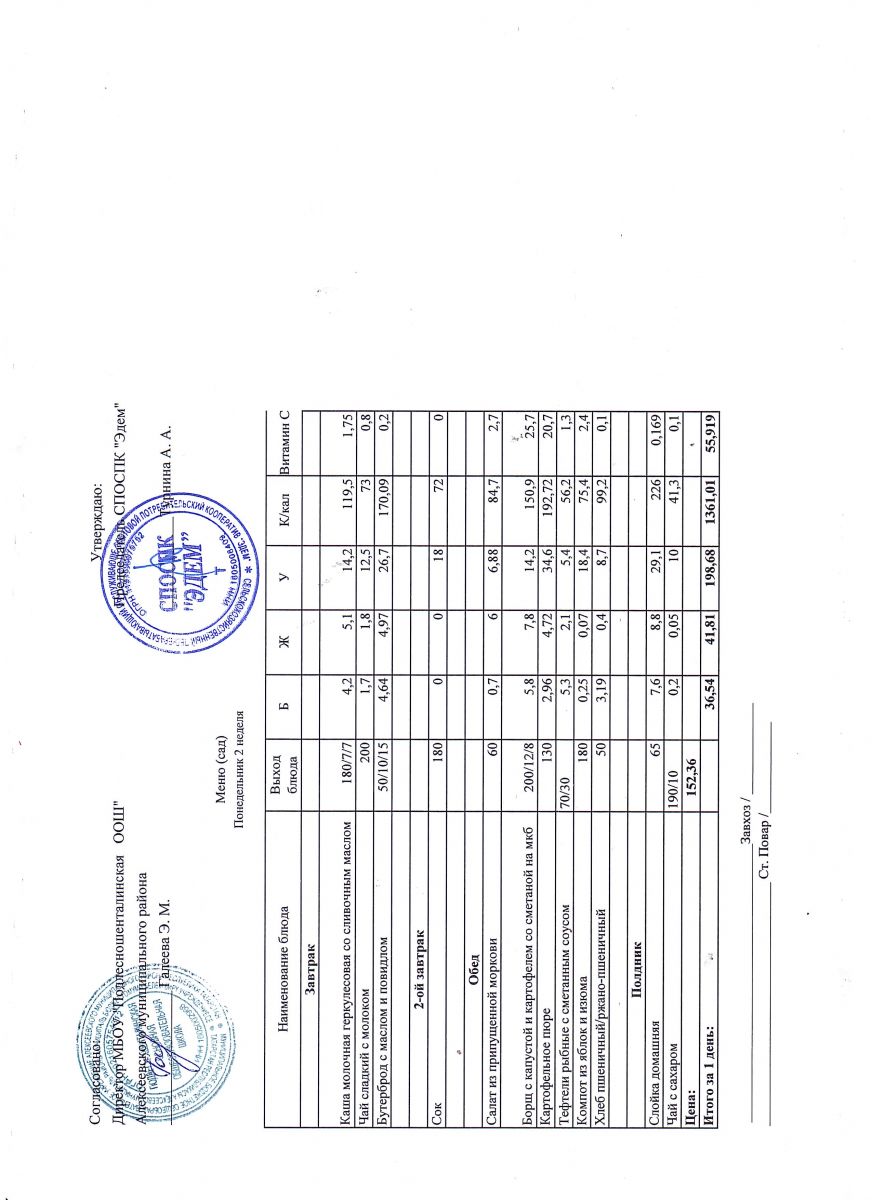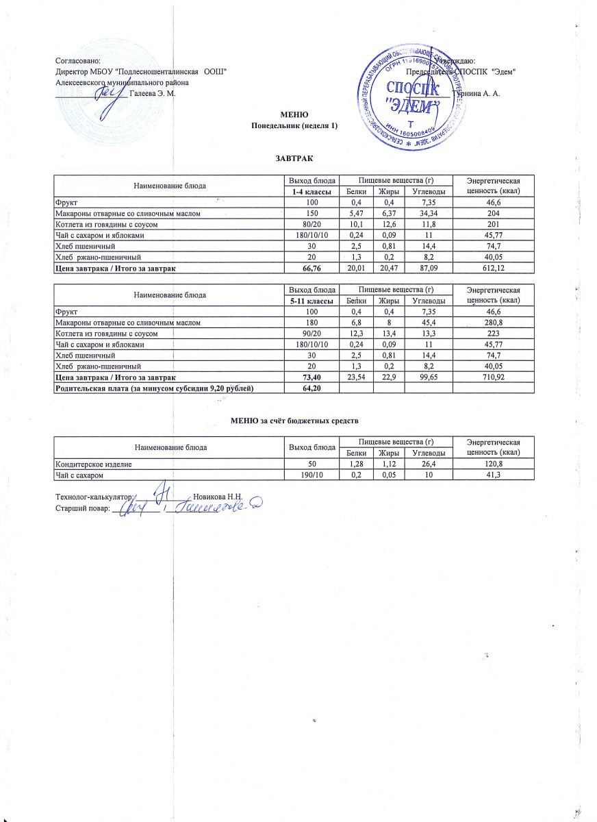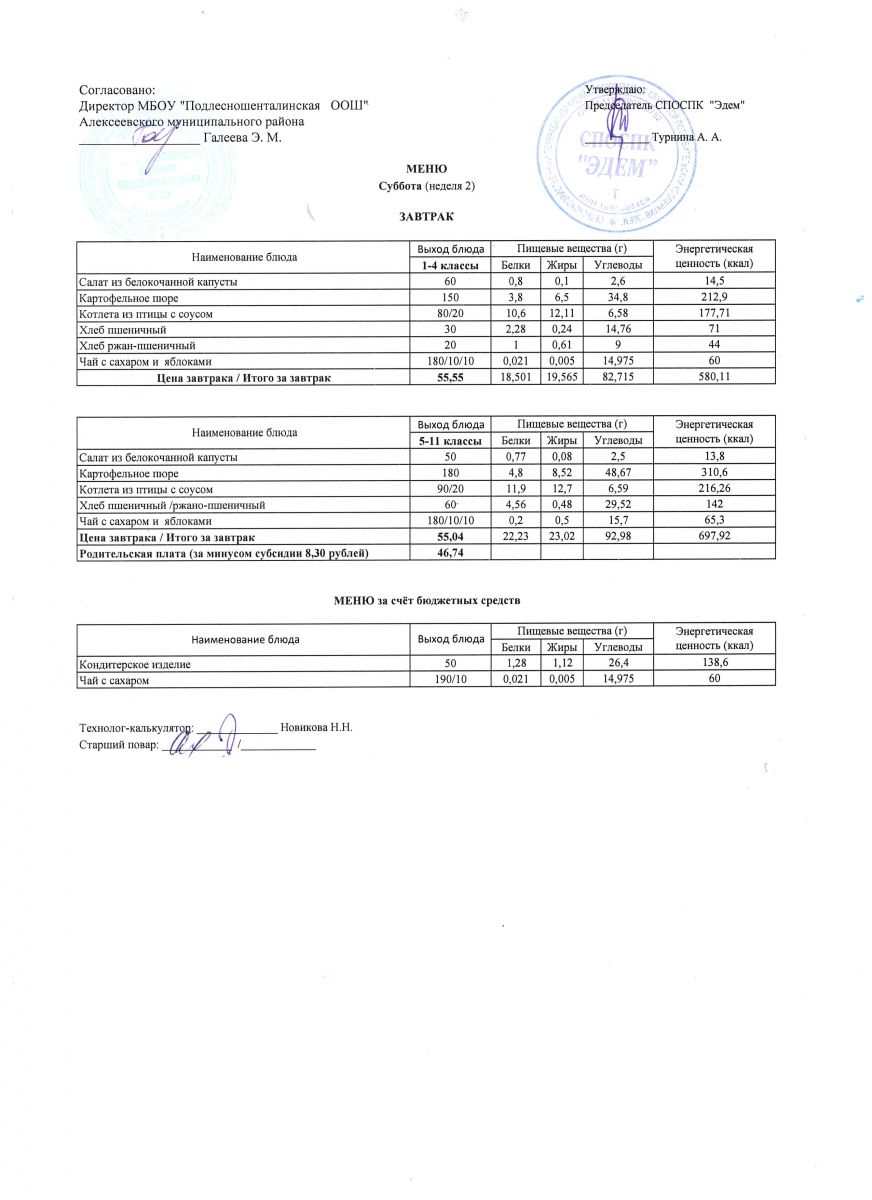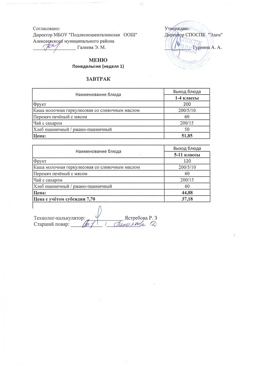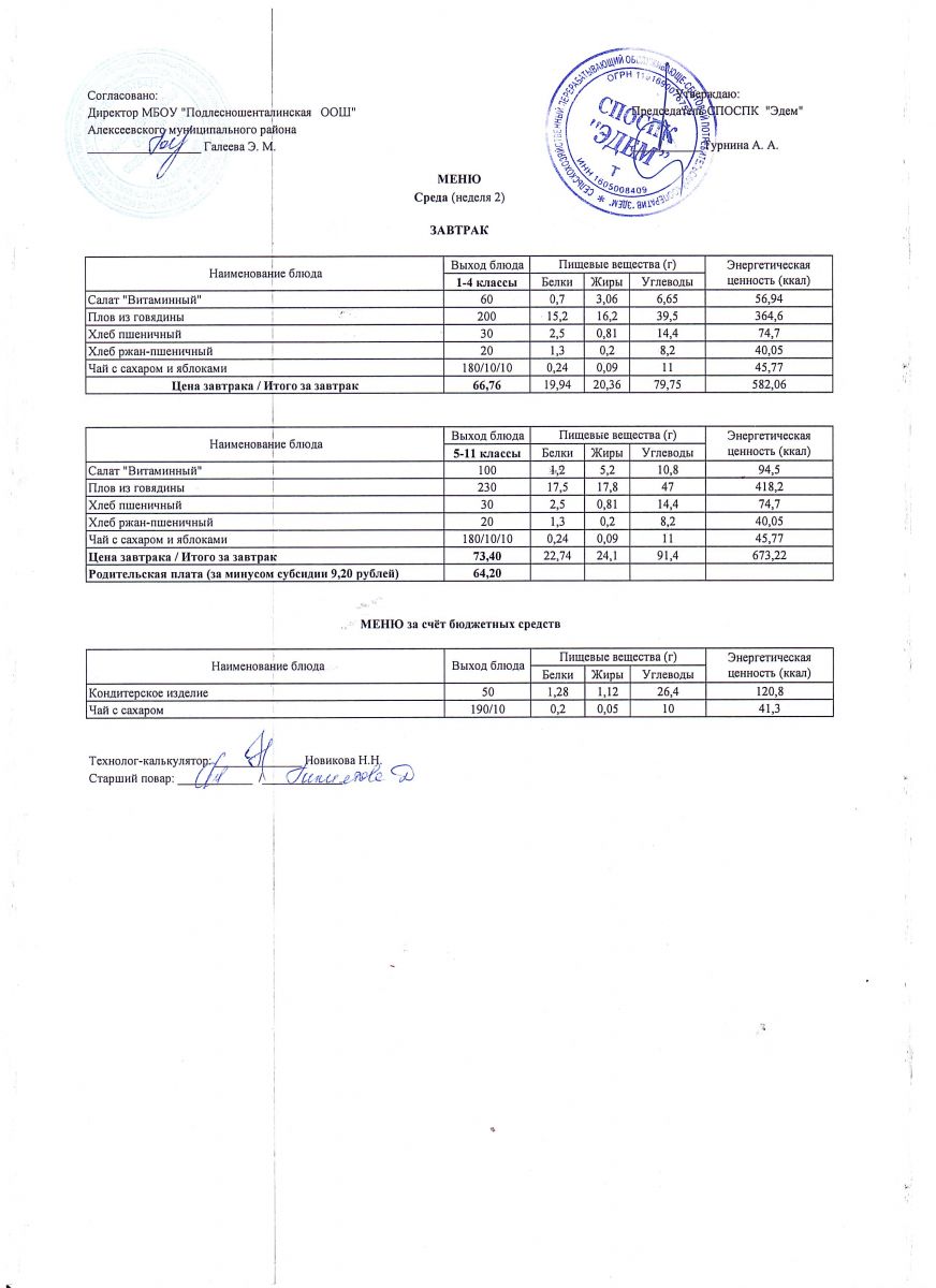 - Примерное двухнедельное меню рационов горячего питания в общеобразовательных организациях Алексеевского района на зимний и весенний период 2020 года Меню для сельских школ