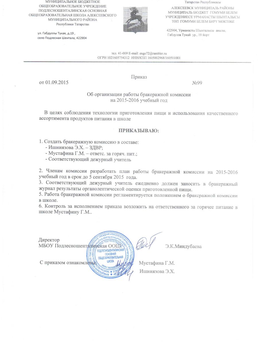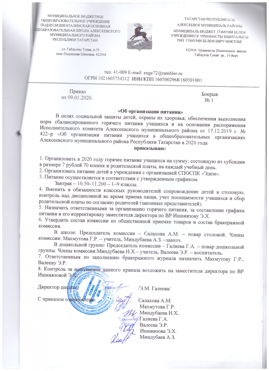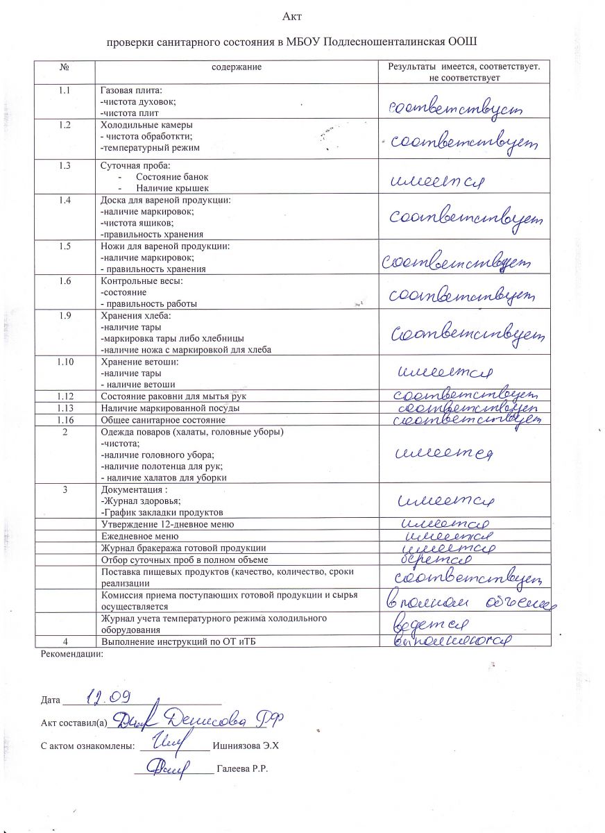 МБОУ Подлесношенталинская ООШ АКТ проверки столовой за январь 2023г