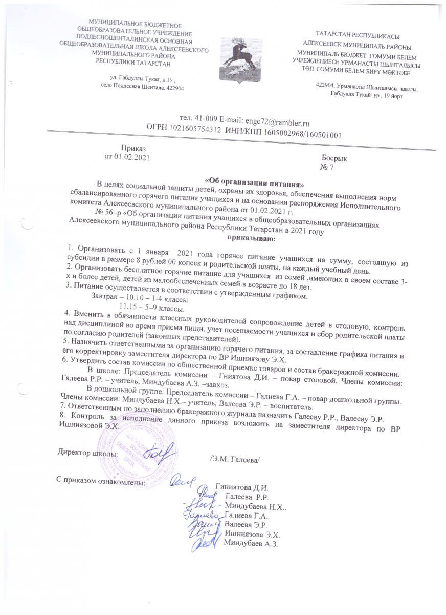 - Распоряжение № 173-р от 29_04_2020 "Об организации питания обучащихся в ОО Алексеевского муниципального района РТ на сумму 7 рублей 70 копеек в день на одного учащегося в условиях предупреждения распространения новой коронавирусной инфекции";