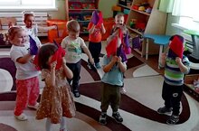 Воспитанники первой группы раннего возраста «Лучики» в ходе режимного момента поиграли в игру с флажками. Под веселую музыку ребята старательно повторяли различные движения за воспитателем. Игра проводилась с целью развития крупной моторики и координации движений детей....