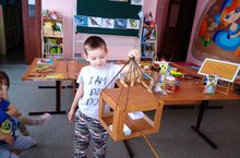 17 января во время НОД дети решили сами сделать кормушки. Взяли втулку от туалетной бумаги, намазали её мёдом, обваляли в смеси из круп,семян подсолнуха, протянули через втулку нить –кормушка готова!...