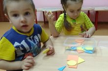 Во время режимных моментов в ходе совместной деятельности воспитанники младшей группы № 2 «Светлячки» учатся конструировать из геометрических фигур. В ходе конструктивной деятельности малыши также закрепляют знания о форме и цвете изученных геометрических фигур....