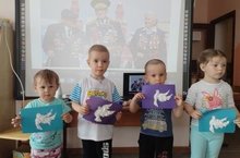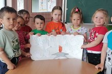 С детьми младшей группы «Сказка» провели беседу на тему: «22 июня – День памяти и скорби», и выполнили коллективную работу «Мир руками детей». Заранее с детьми подготовили голубей из ладошек. Голубь - птица мира. Наших голубей мы расположили над вечным огнем. Вечный огонь – народная память о героях. Он символизирует то, что память о подвиге защитников Родины будет всегда жить вечно в наших сердцах....